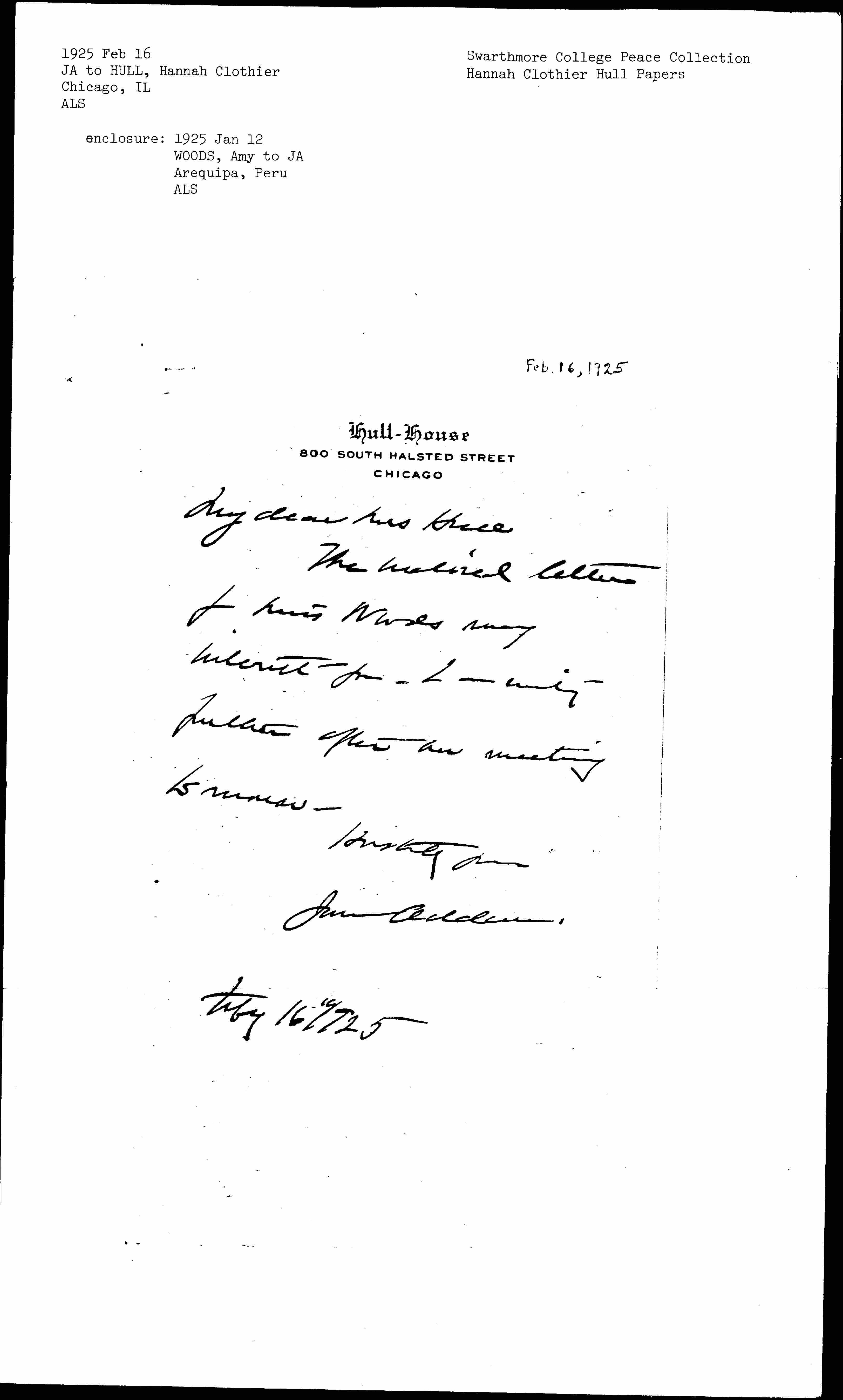 The [enclosed] letter from Miss Woods may interest you. I am writing further after our meeting tomorrow.