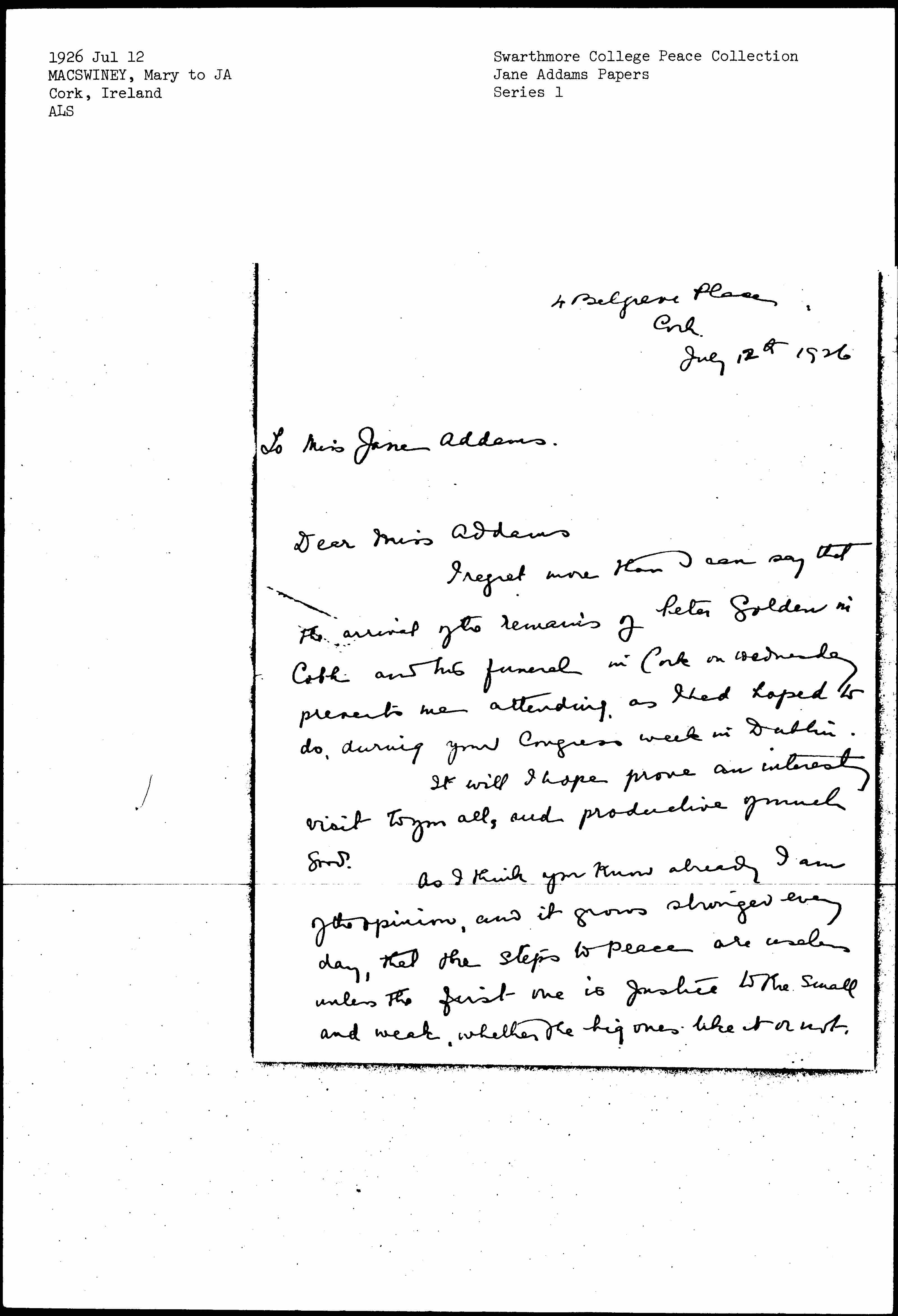 To Miss Jane Addams.