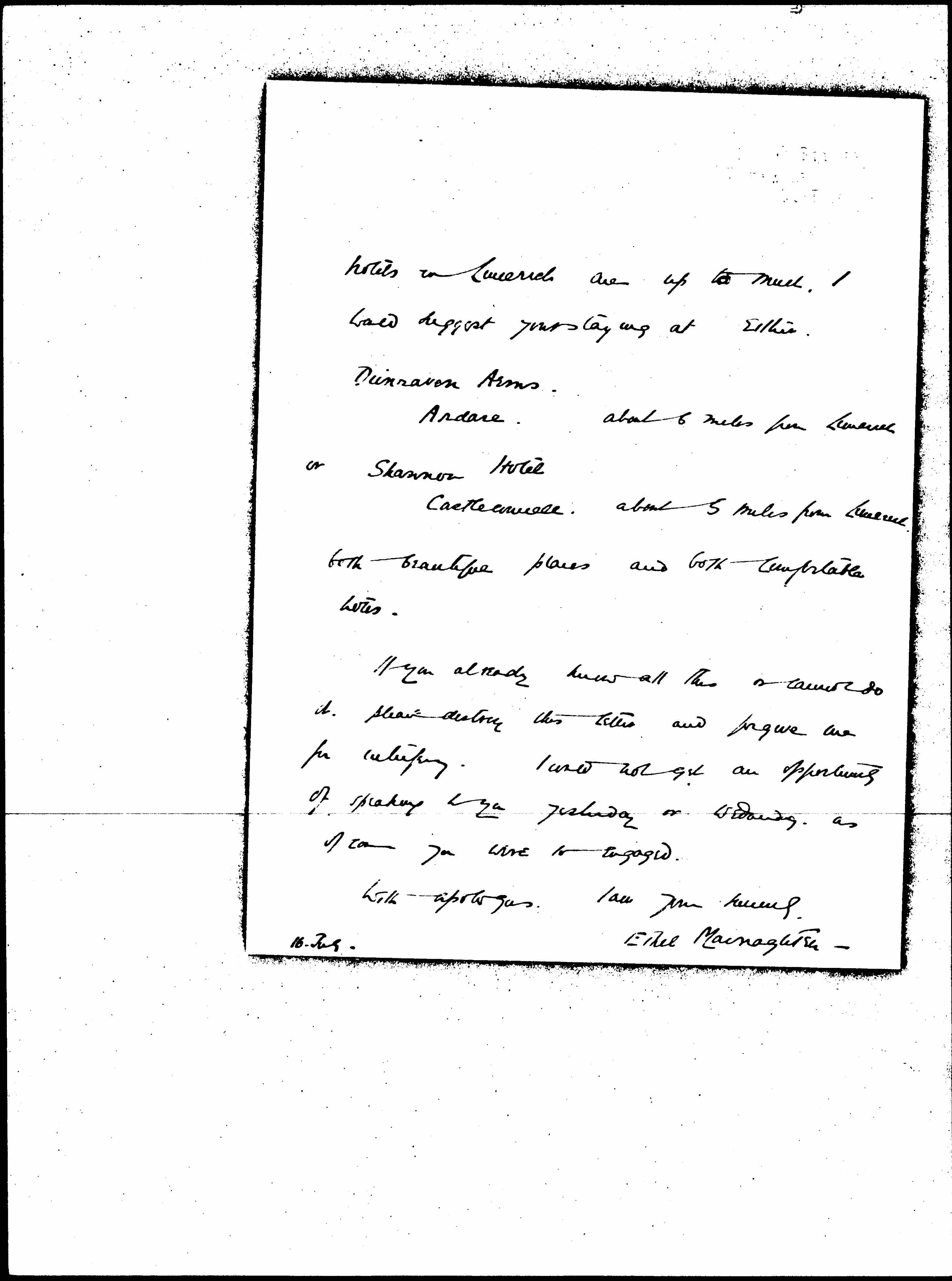 Dunraven Arms. [Adare]. about [6?] miles from Limerick