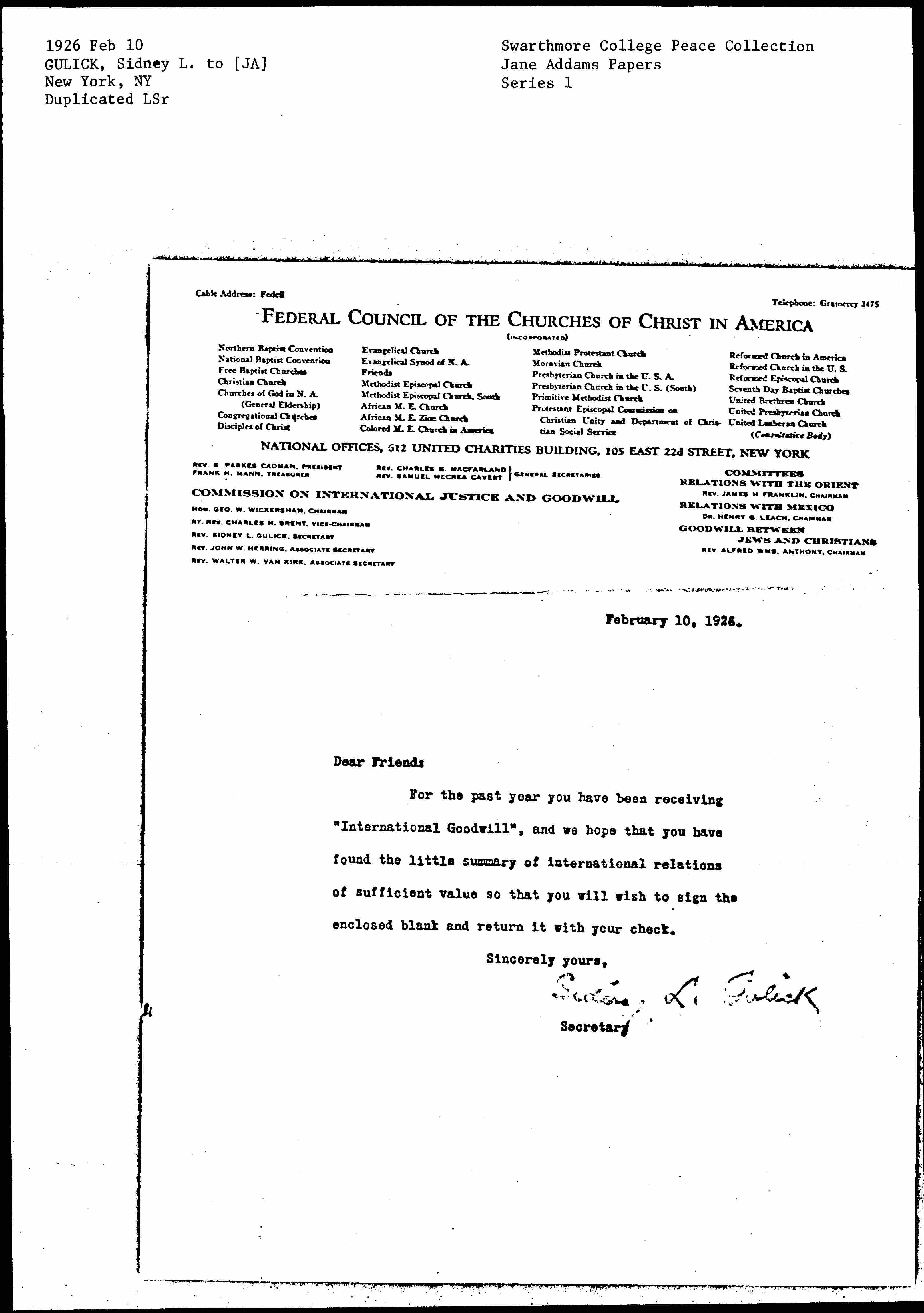 Sidney L. Gulick [signed]