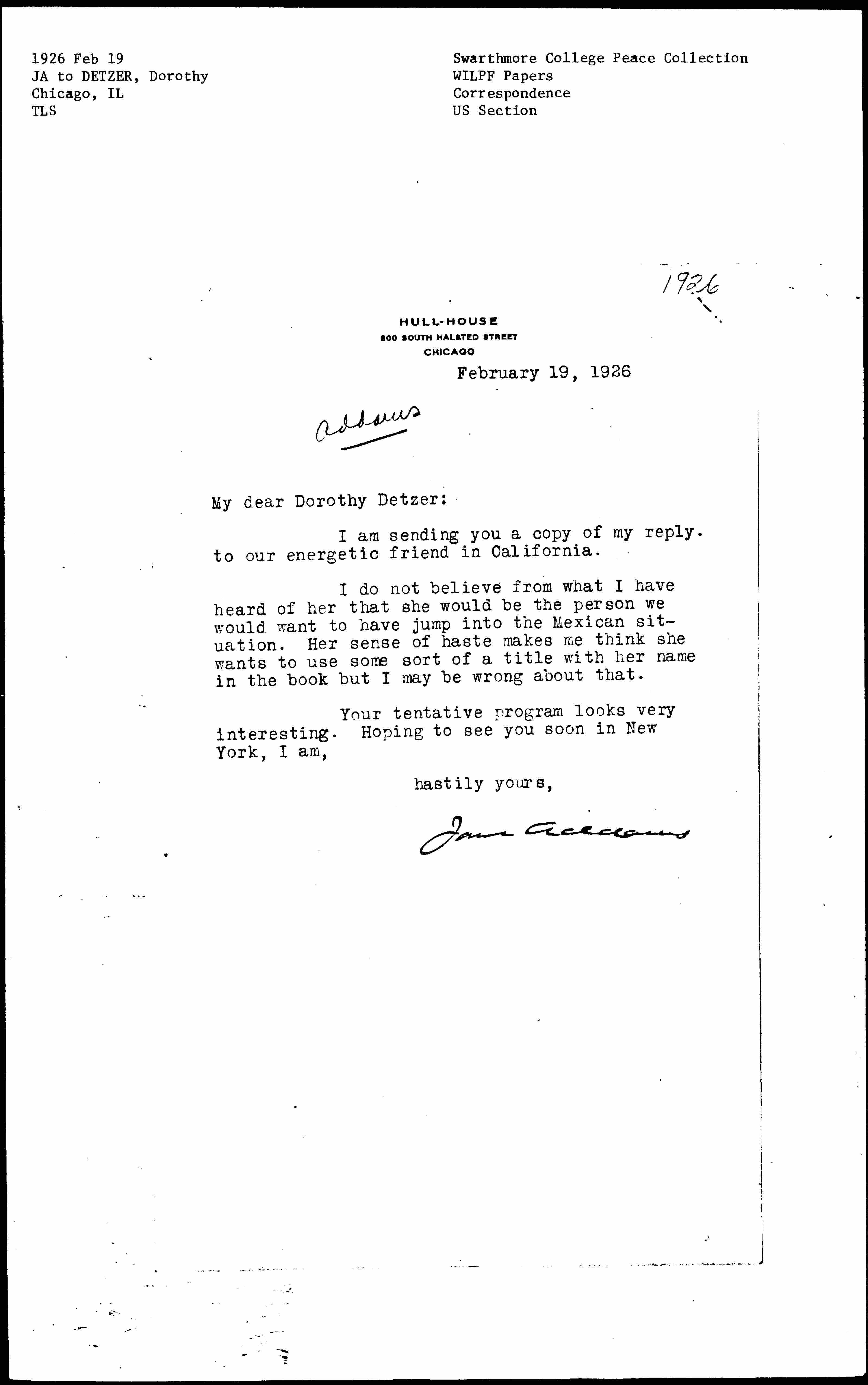 Jane Addams [signed]