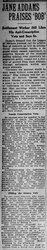JANE ADDAMS PRAISES "BOB"