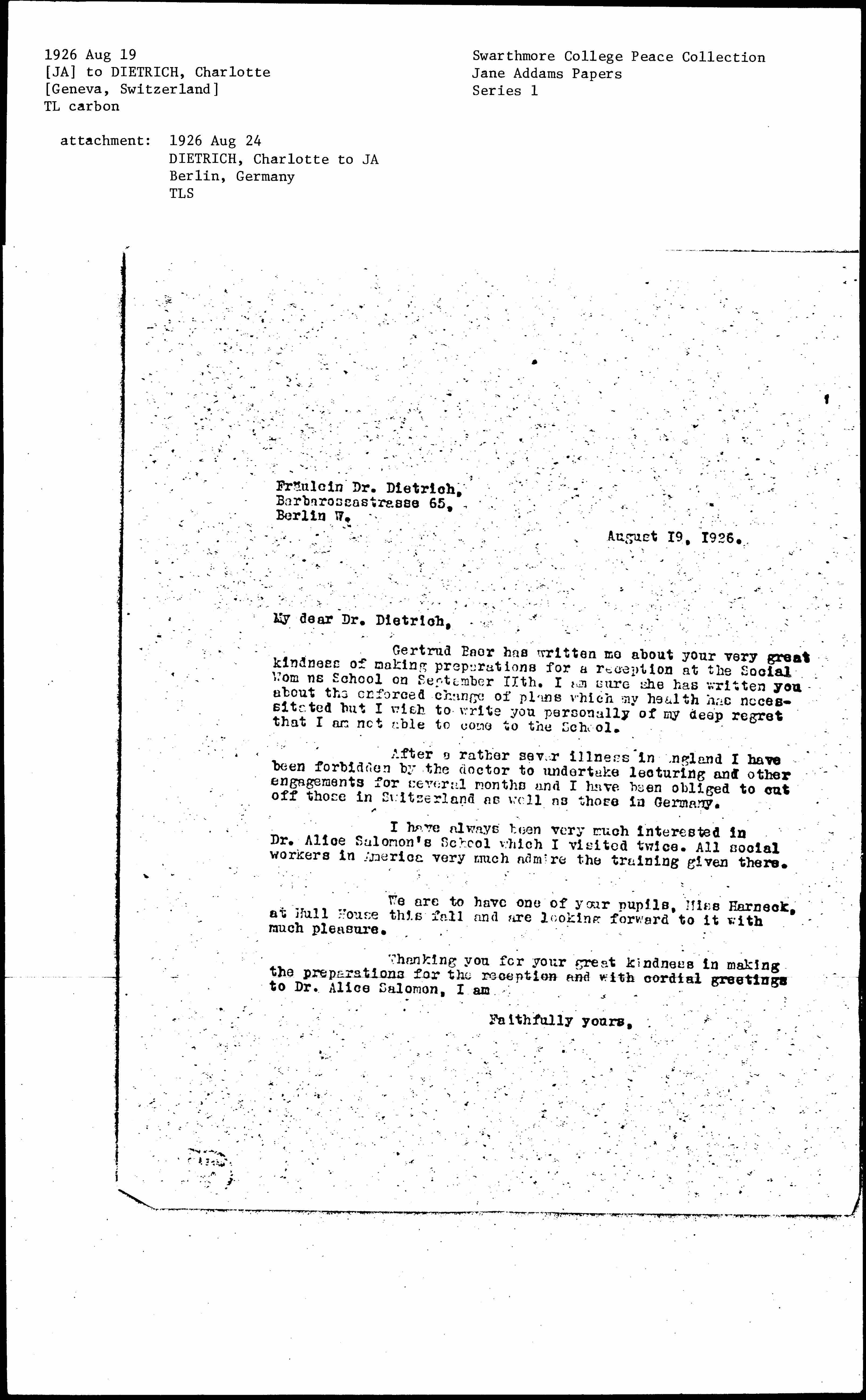 I have always been very much interested in Dr. Alice Salomon’s School which I visited twice. All social workers in America very much admire the training given there.