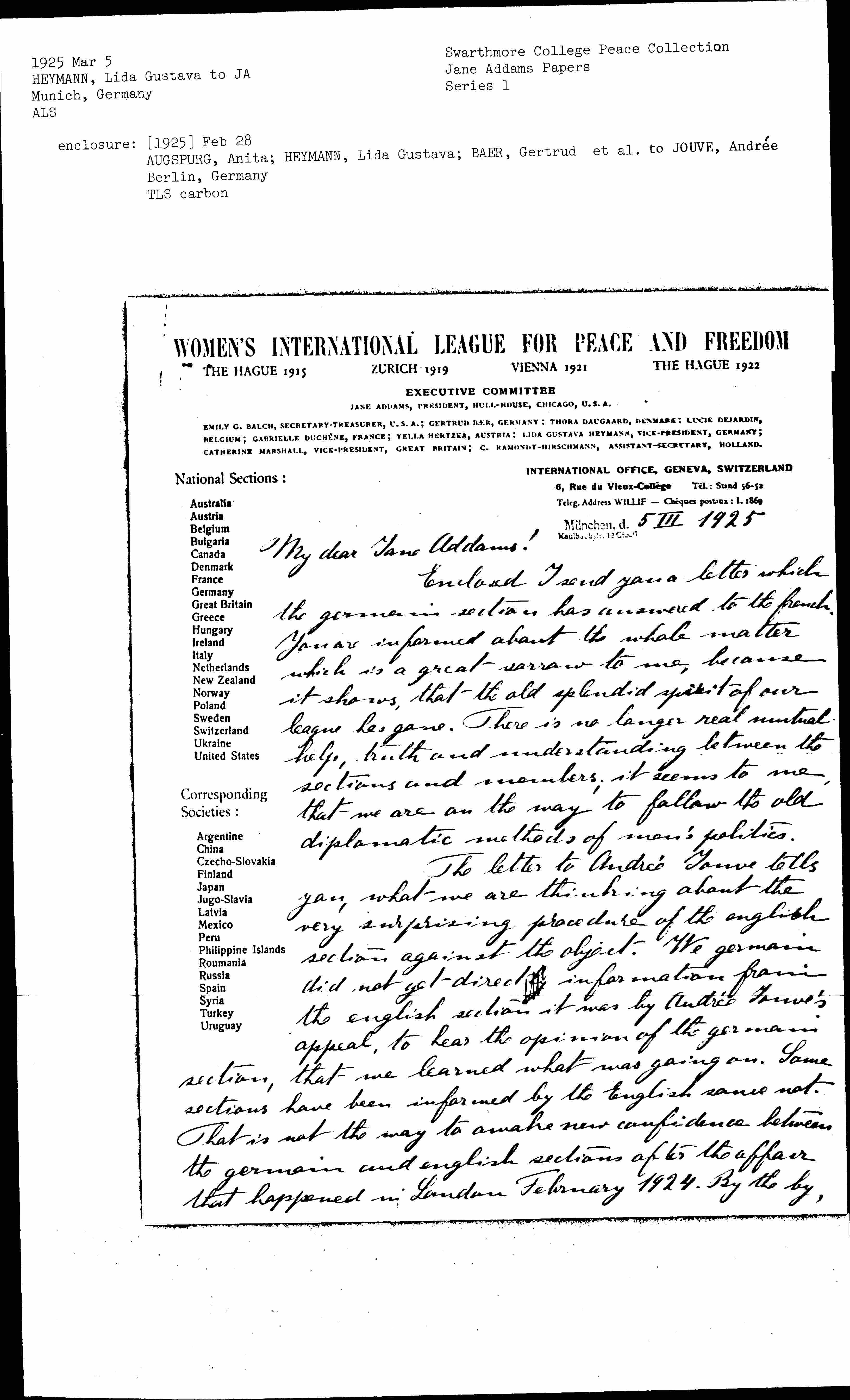 Lida Gustava Heymann to Jane Addams, March 5, 1925
