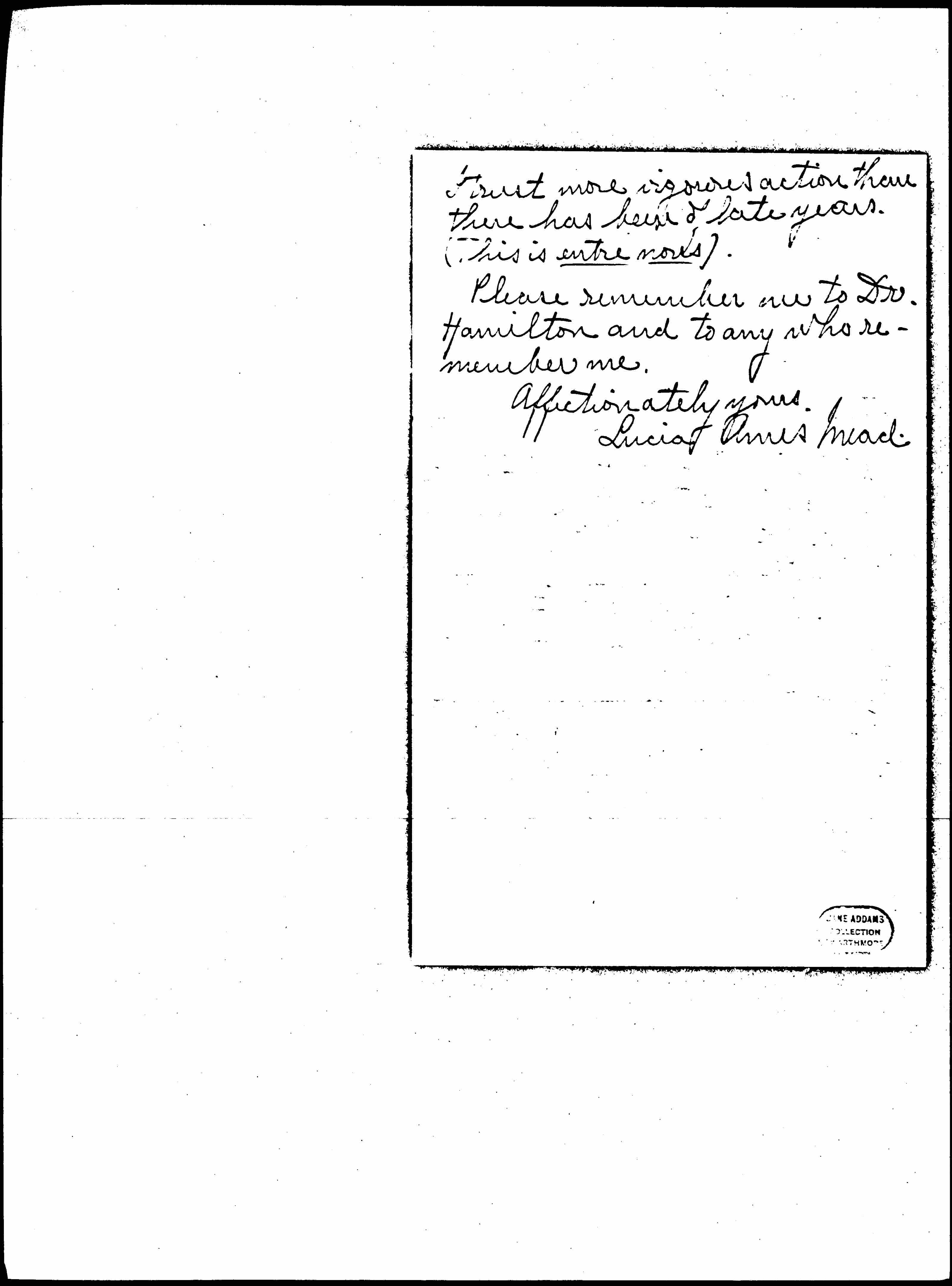 Please remember me to Dr. Hamilton and to any who remember me.