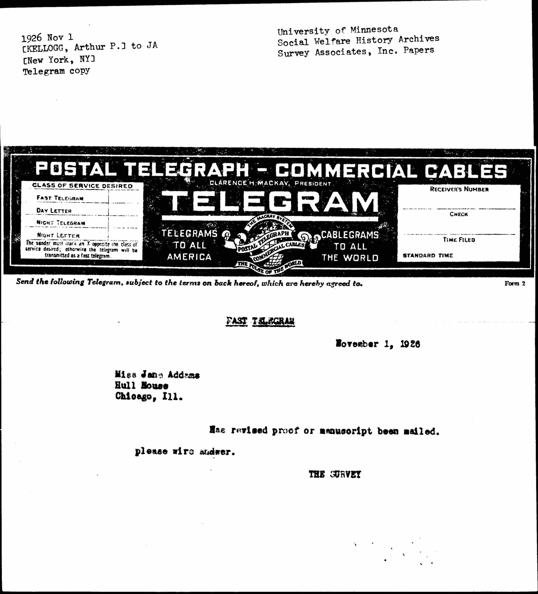 Has revised proof or manuscript been mailed. Please wire answer.