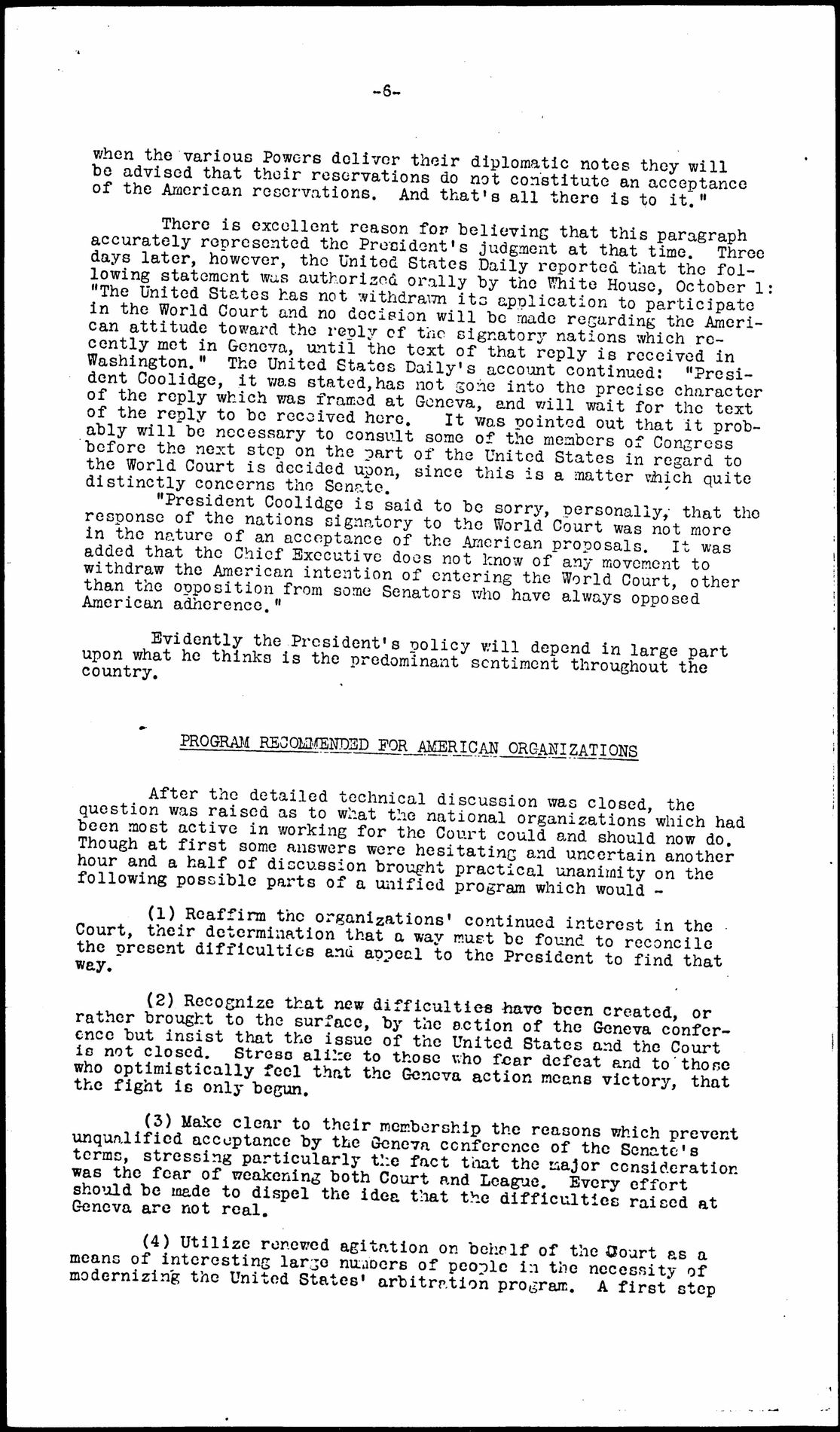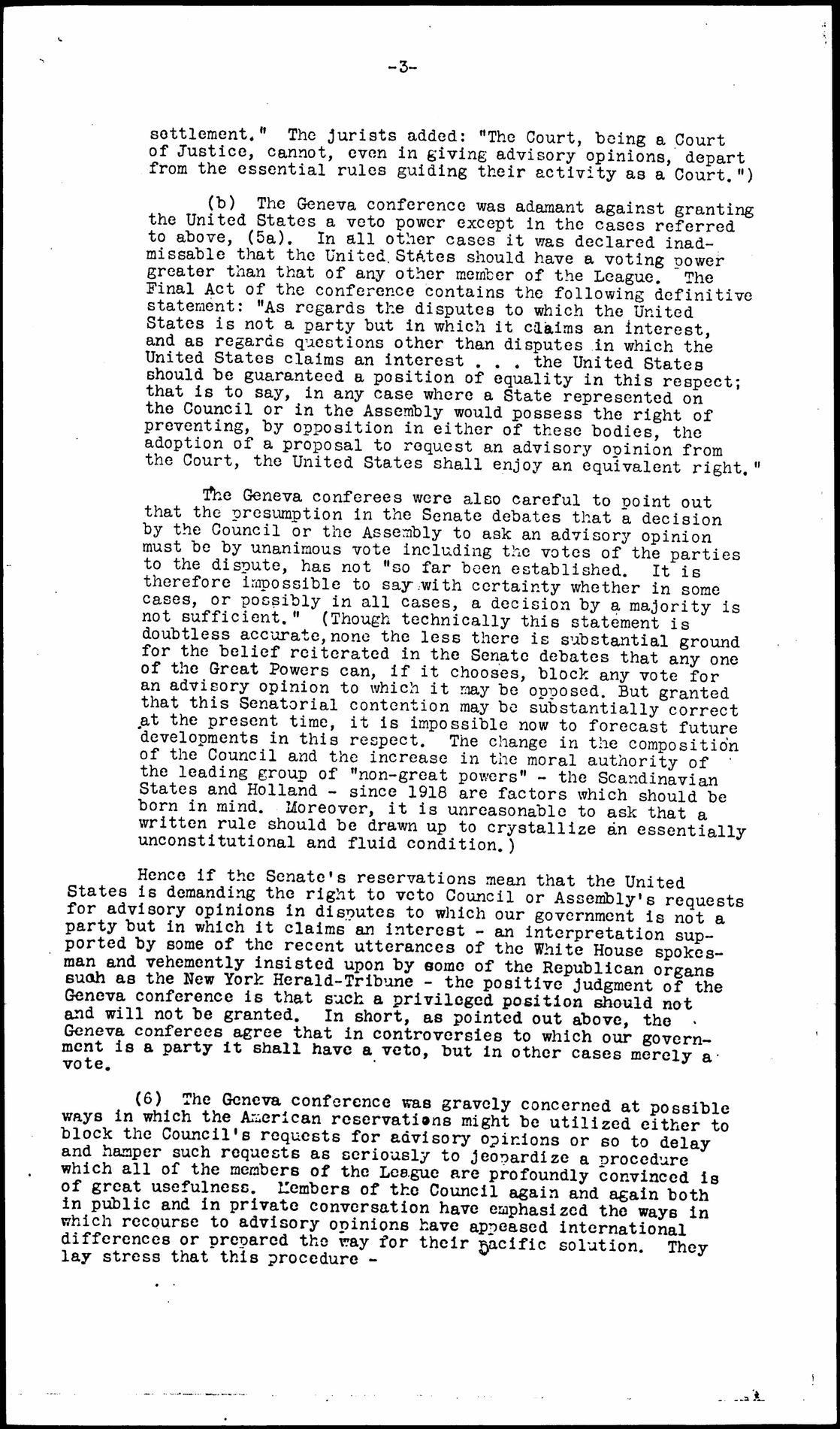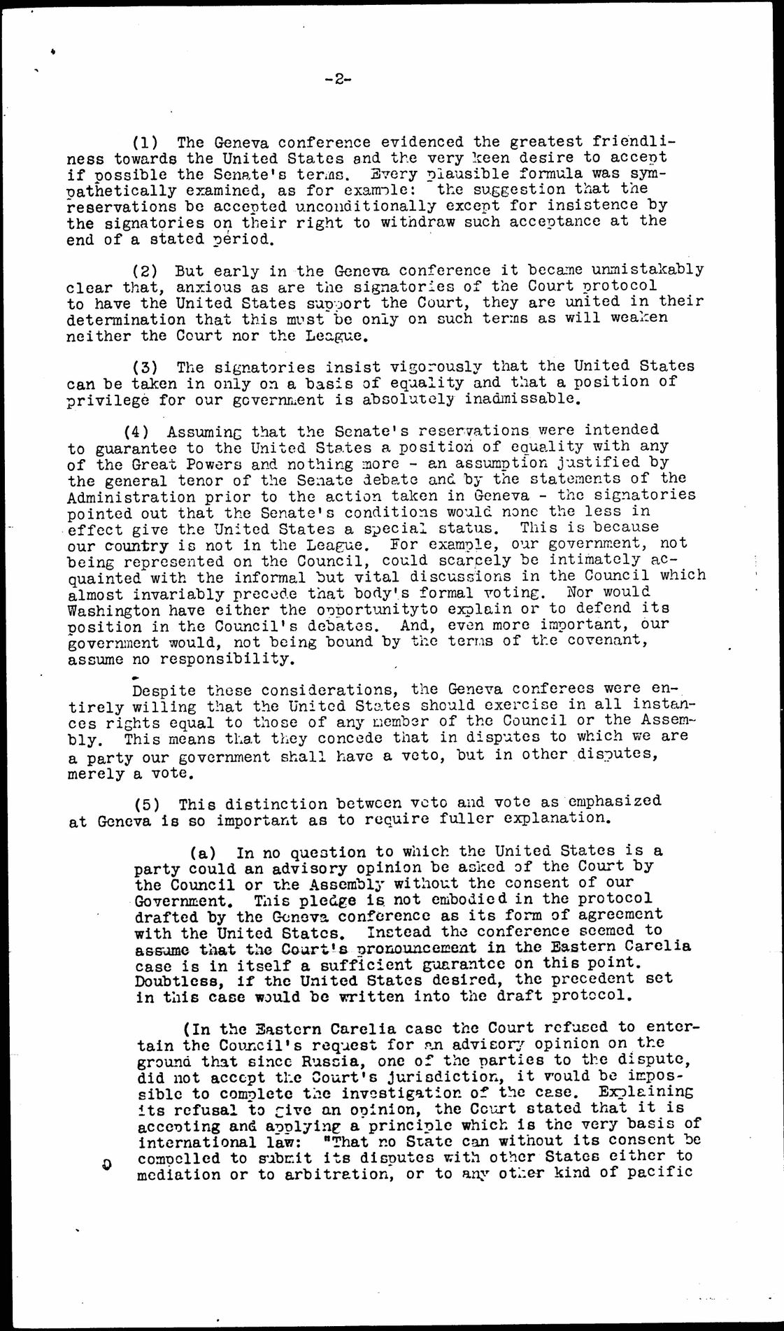 Memorandum on the World Court Conference in New York, October 27, 1926