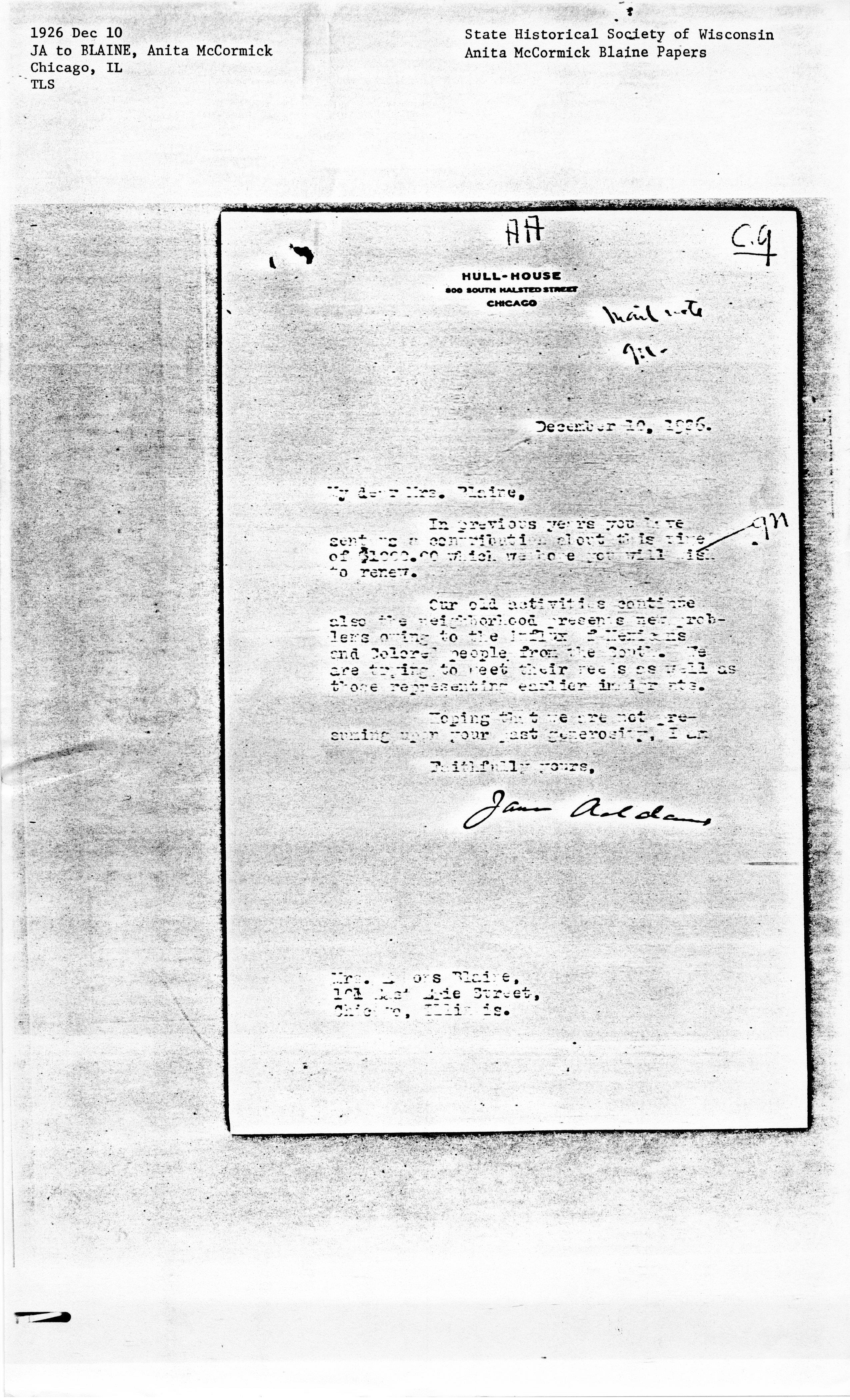 Jane Addams [signed]