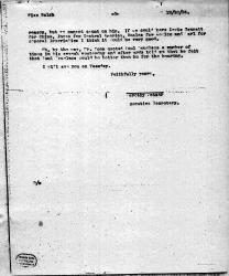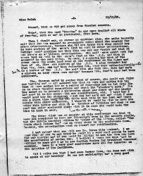Mrs. Sherman ended by saying that of course, she could not fight our battles and we all assured her that we were not asking her to; that we were asking her as a matter of fair-play not to let this lie go on about Russian connections and about the "slacker's oath." She has asked me to prepare a memorandum about our money and the pledge and send it to her along with our constitution, etc. I told her I would send her the statement which you had made out and which I sent you a short time ago ↑[from?] [illegible]↓, but she feels that this is too long and wants merely this other statement ↑on the oath & money.↓ I thought it would be wise to have you write this letter and sign it as Director of Policies and [then] we can send the other statement along with it in case she would take the time to look it over.