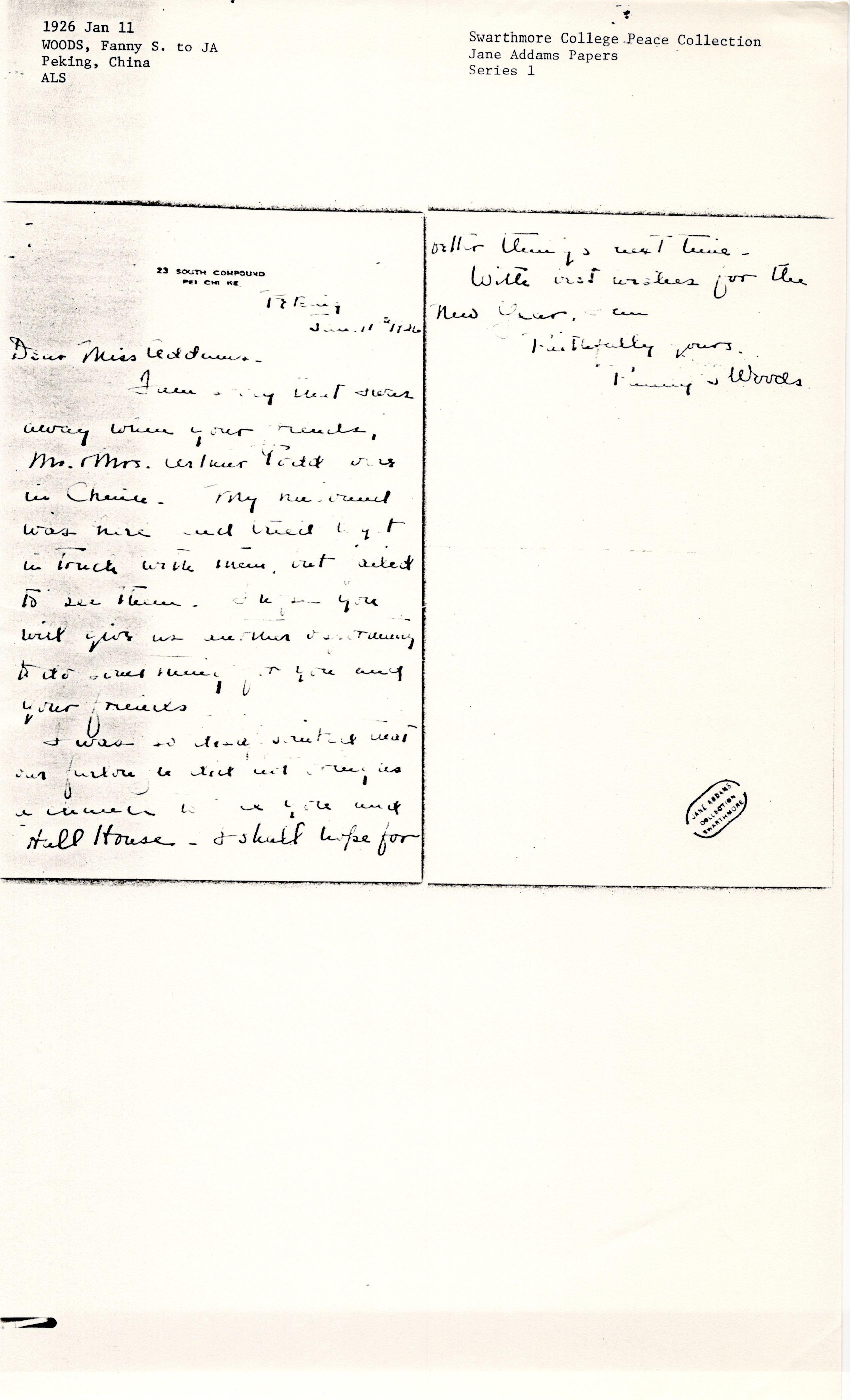 I was so disappointed that our furlough did not [give] us a chance to see you and Hull House. I shall hope for other things next time.