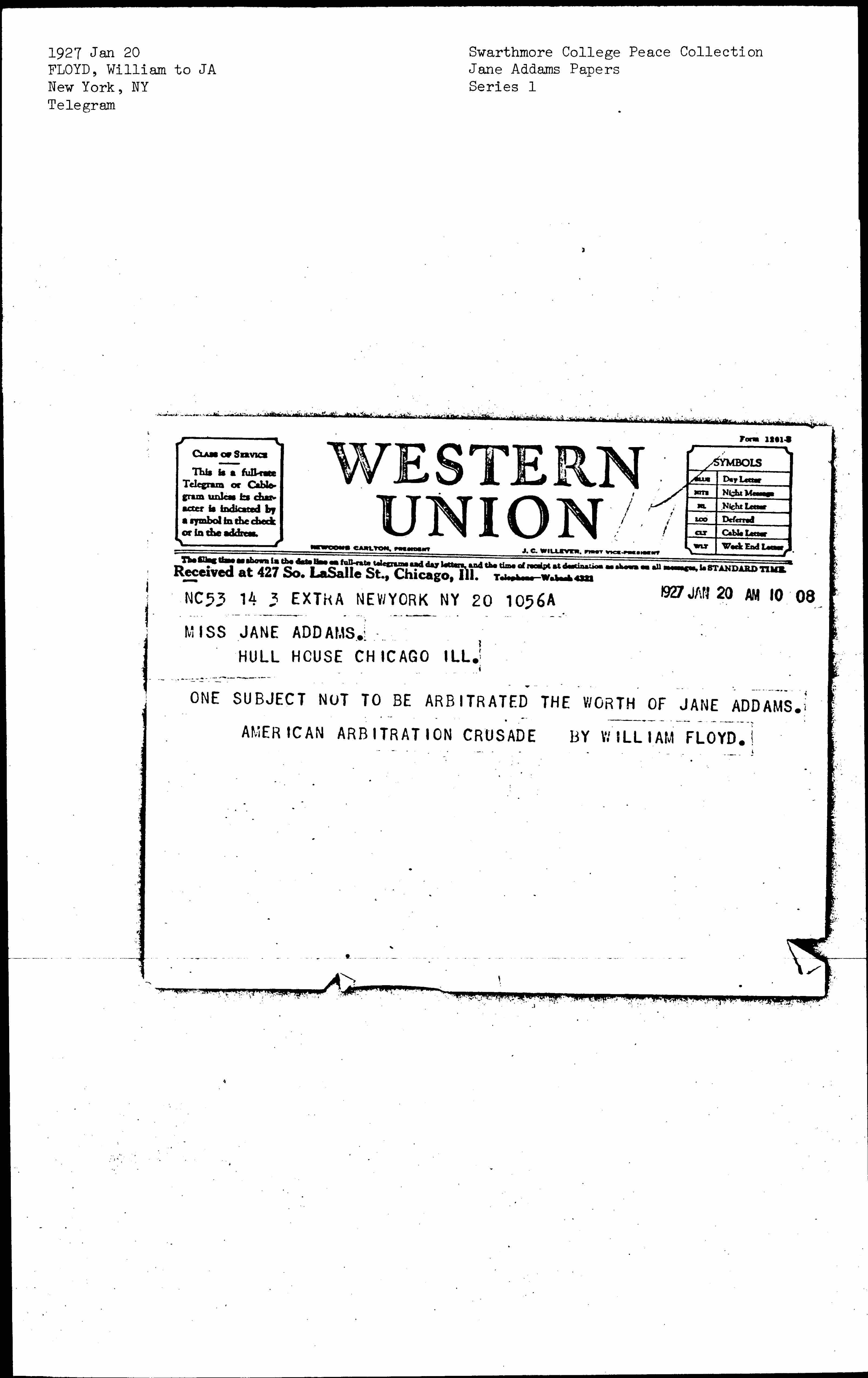 ONE SUBJECT NOT TO BE ARBITRATED THE WORTH OF JANE ADDAMS.