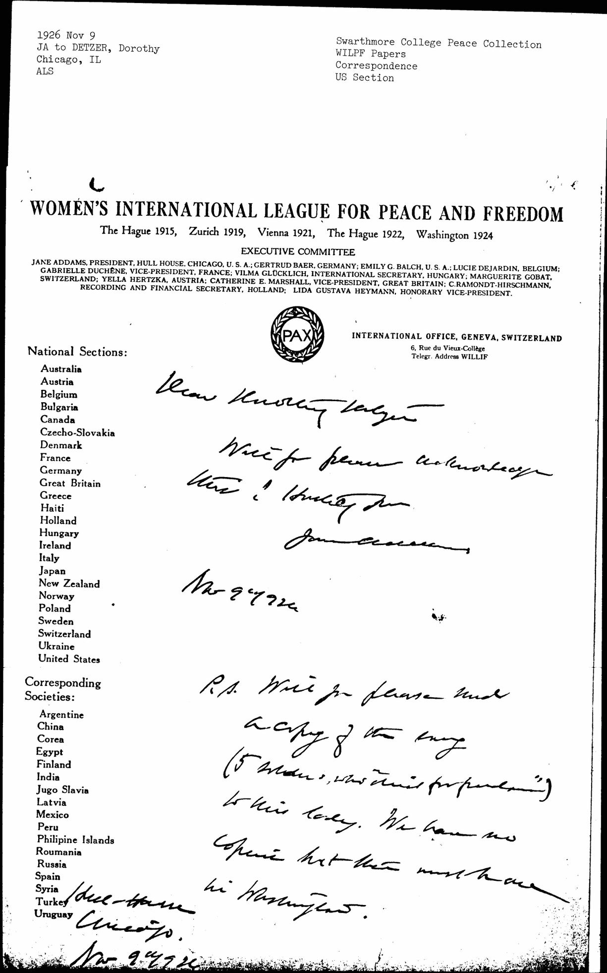 WOMEN'S INTERNATIONAL LEAGUE FOR PEACE AND FREEDOM