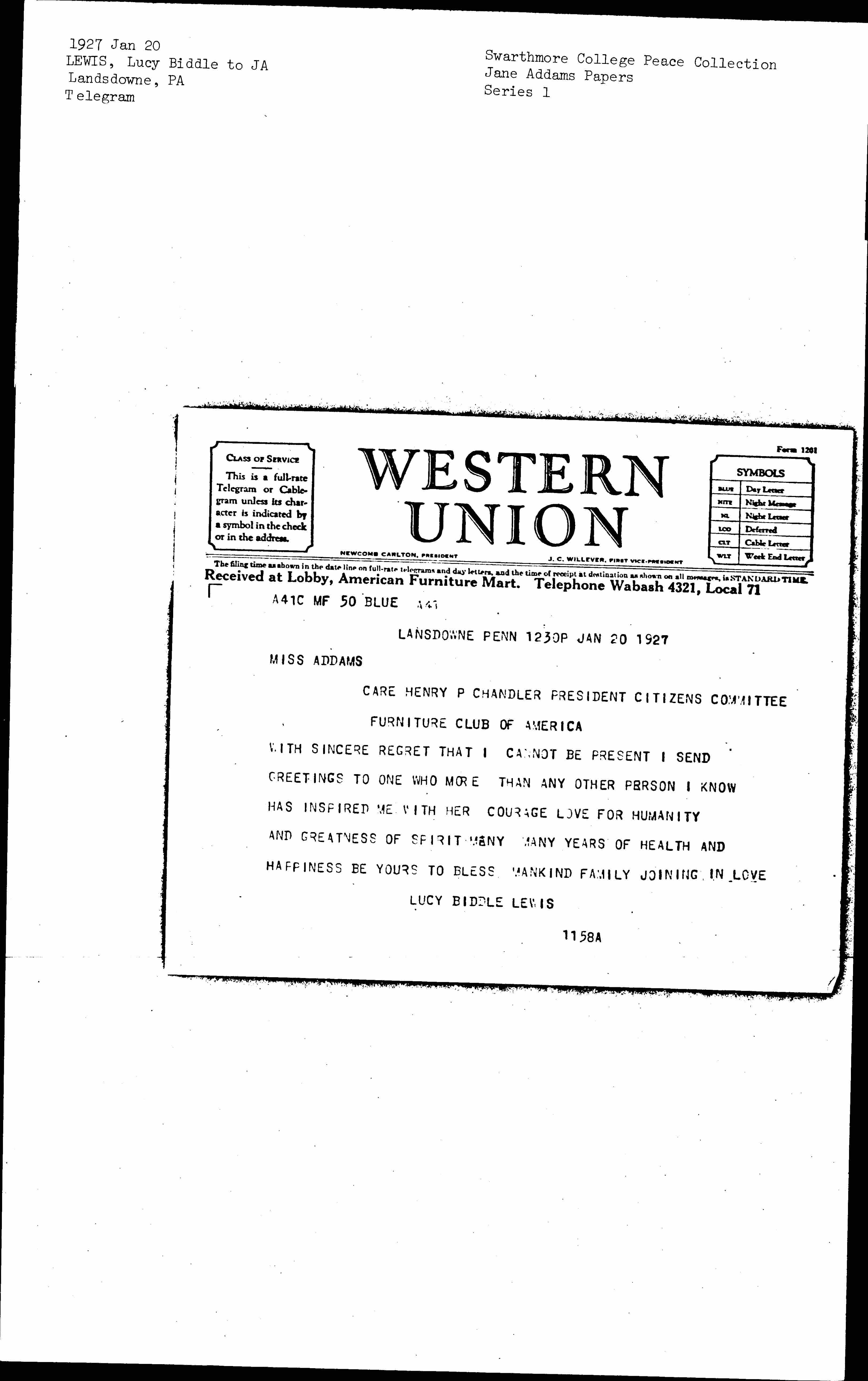 LANDOWNE PENN 12:30 P JAN 20 1927