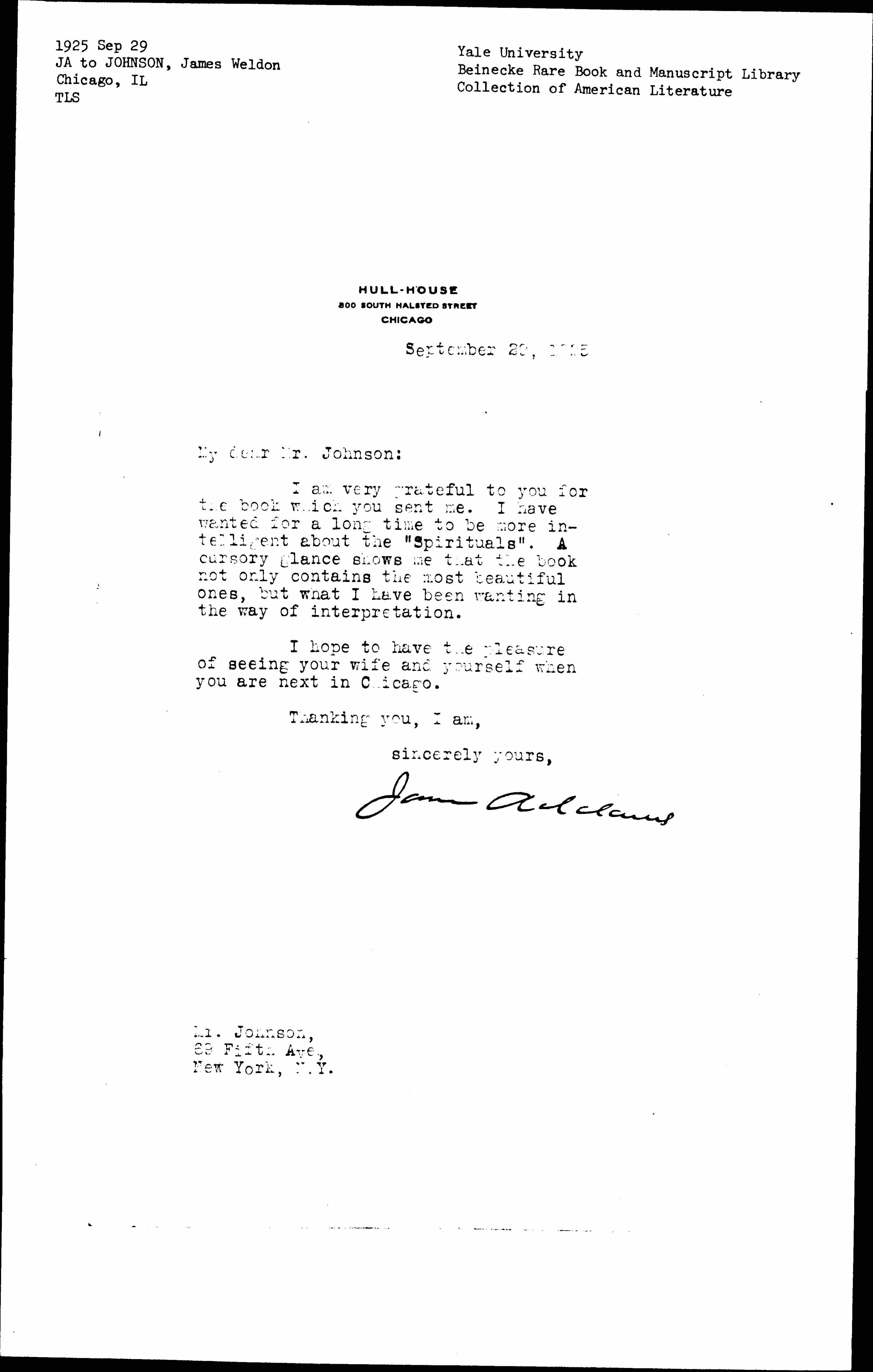 Jane Addams [signed]