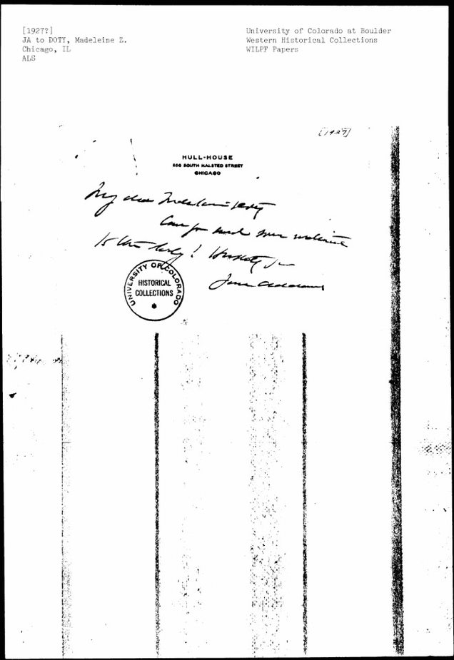 Jane Addams to Madeleine Zabriskie Doty, 1927