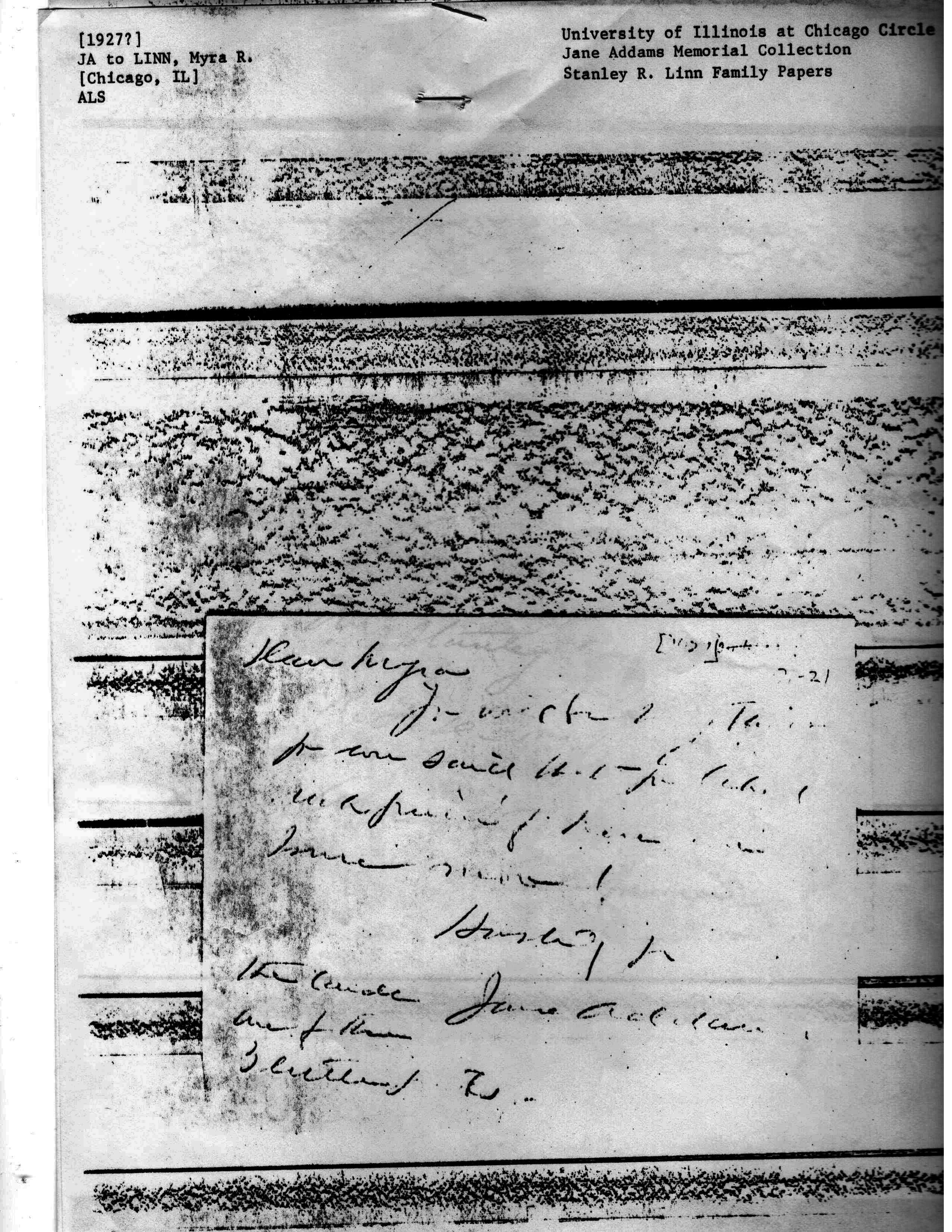 Jane Addams to Myra Harriet Reynolds Linn, 1927