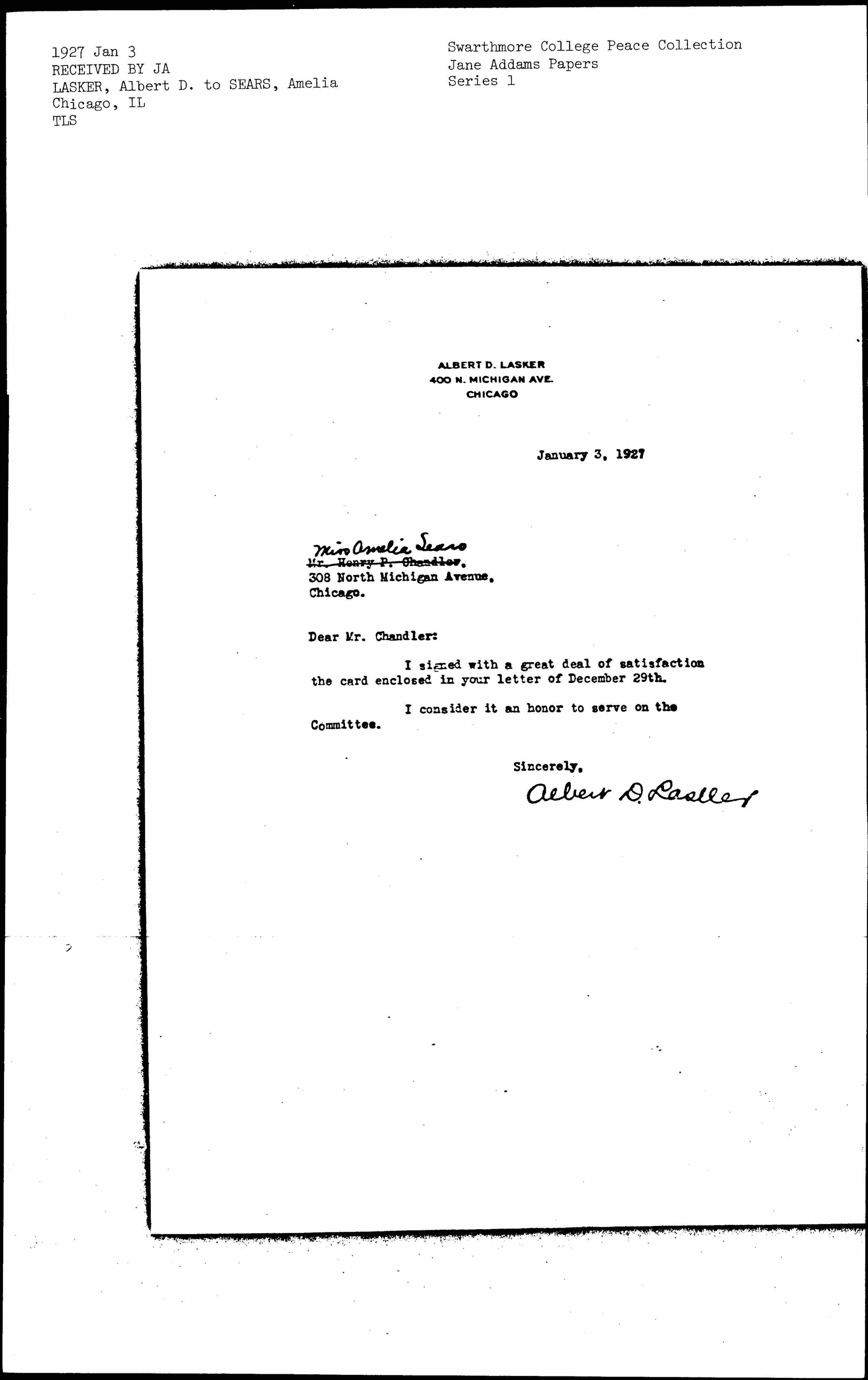 ↑Miss Amelia Sears↓ Mr. Henry P. Chandler
