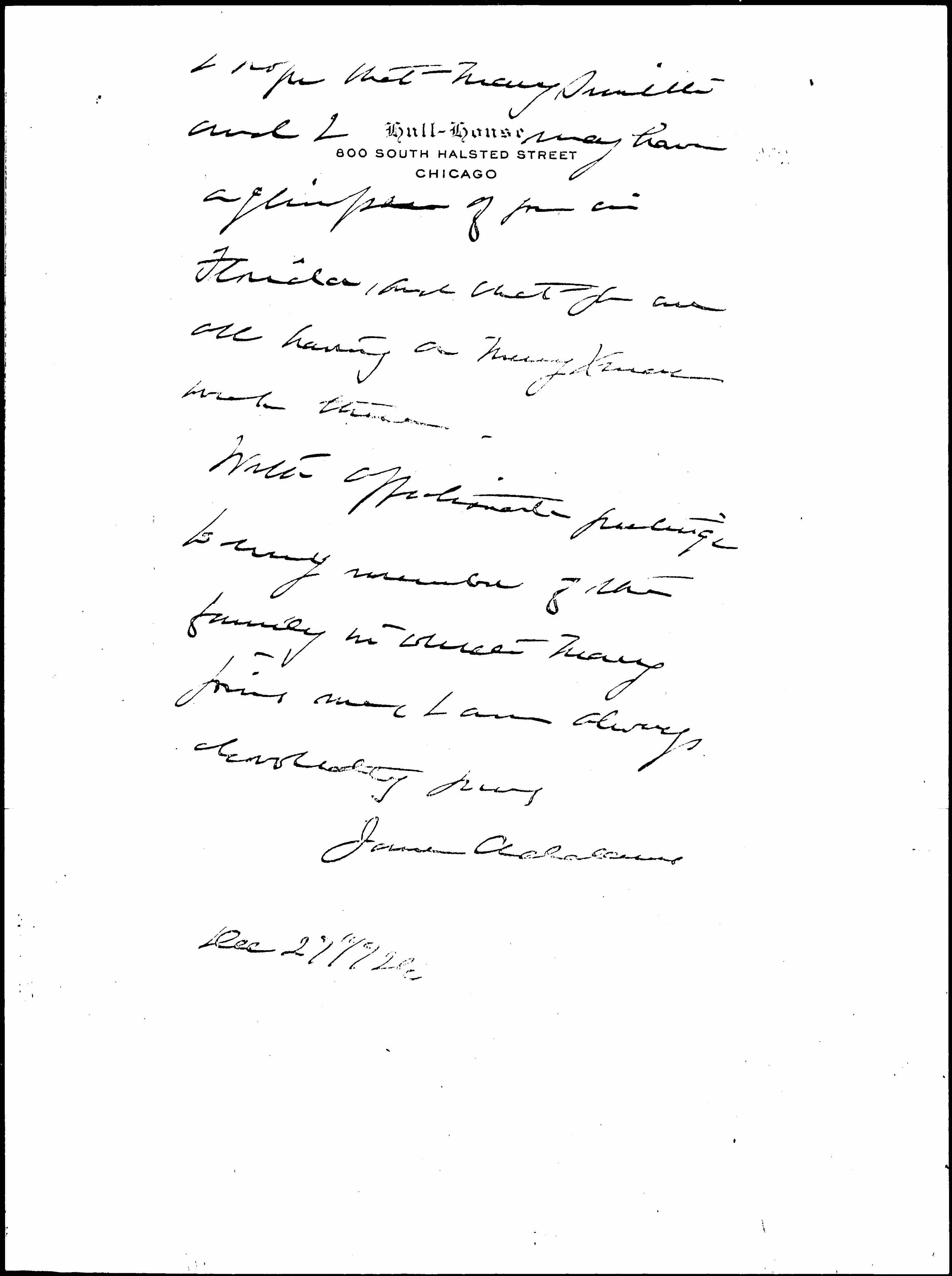The gay berries added so much to the Christmas spirit at Hull-House as they have before and I want to thank you most sincerely once again. We are always very grateful for the understanding of Hull-House which you and Mr Ewing have always had, and for all your kindness to it. [page 2]