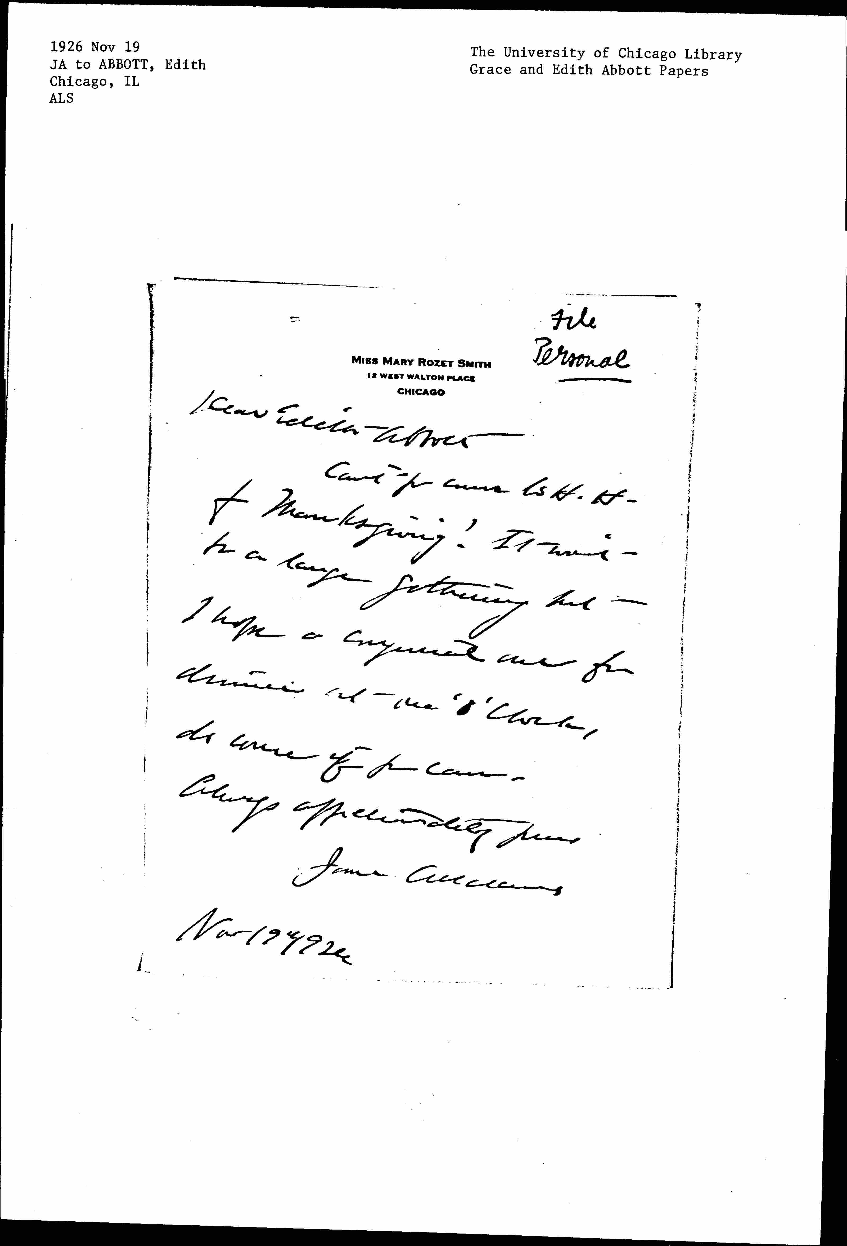 Can't you come to H.H. for Thanksgiving? It won't be a large gathering but I hope a congenial one for dinner at one o'clock, do come if you can.
