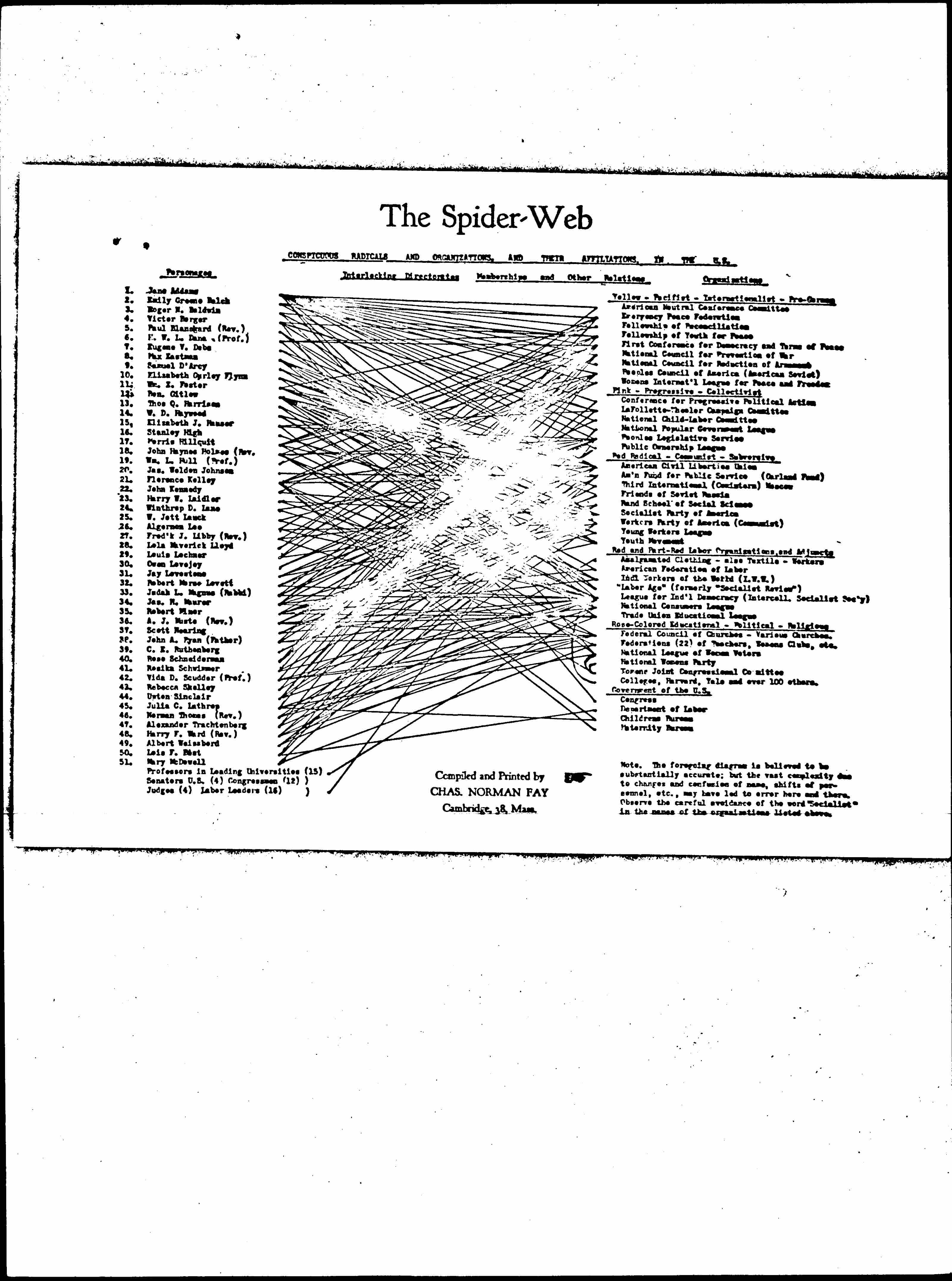 Note. The foregoing diagram is believed to be substantially accurate; but the vast complexity due to changes and confusion of name, shifts of personnel, etc., may have led to error here and there. Observe the careful avoidance of the word "Socialist" in the names of the organizations listed above.