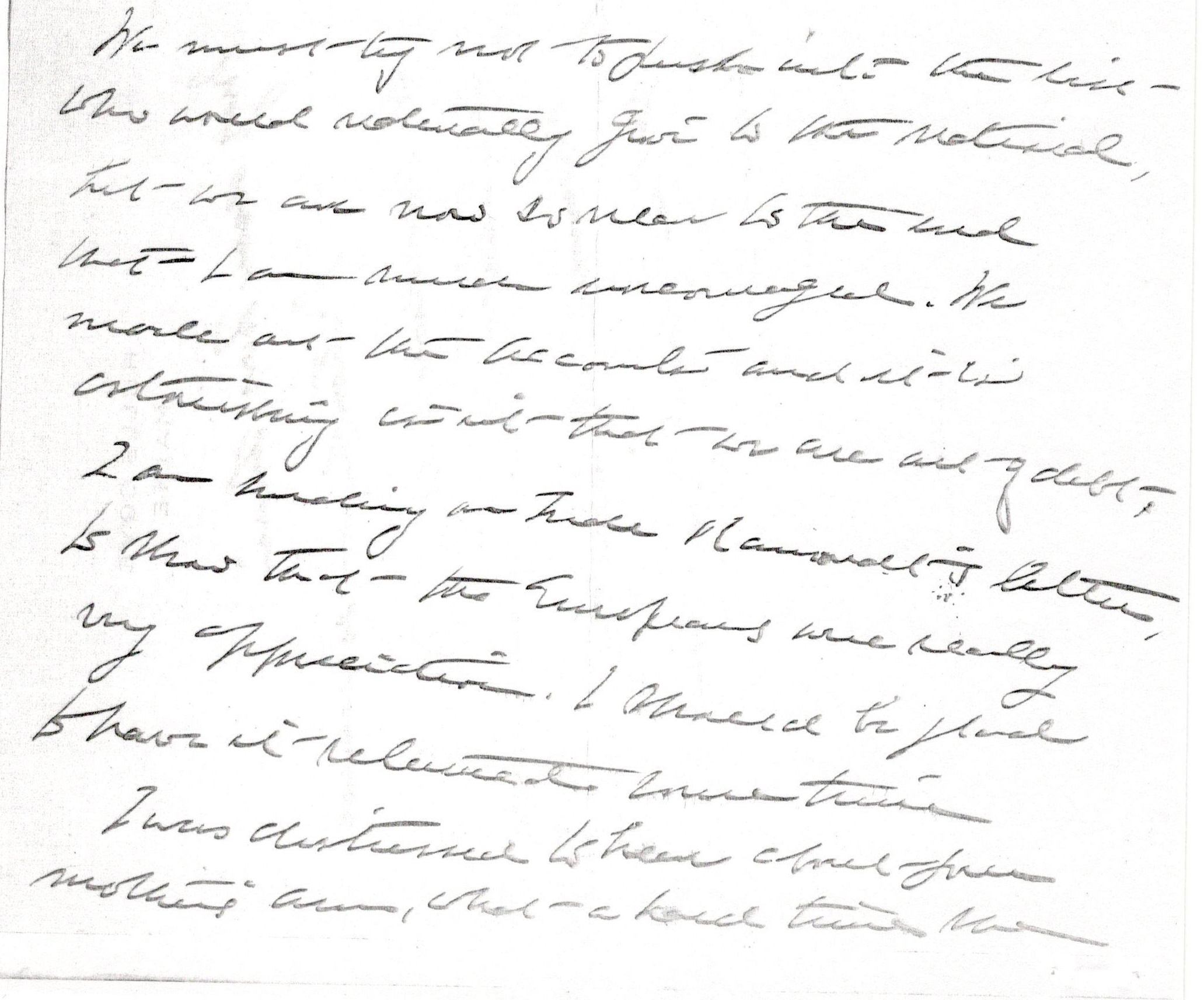 I was distressed to hear about your mother's arm, what a hard time she [page 4] does have and what astonishing ability.