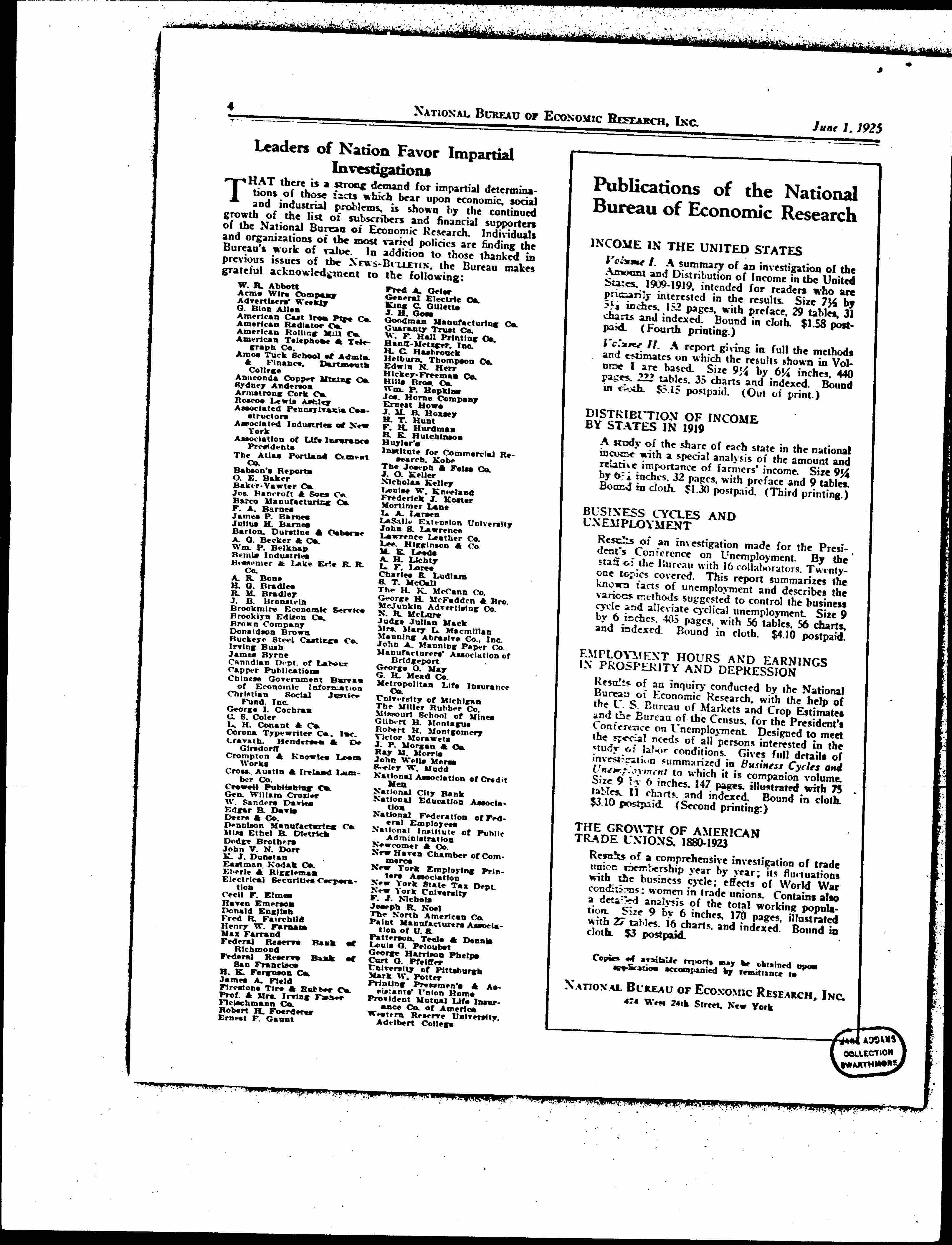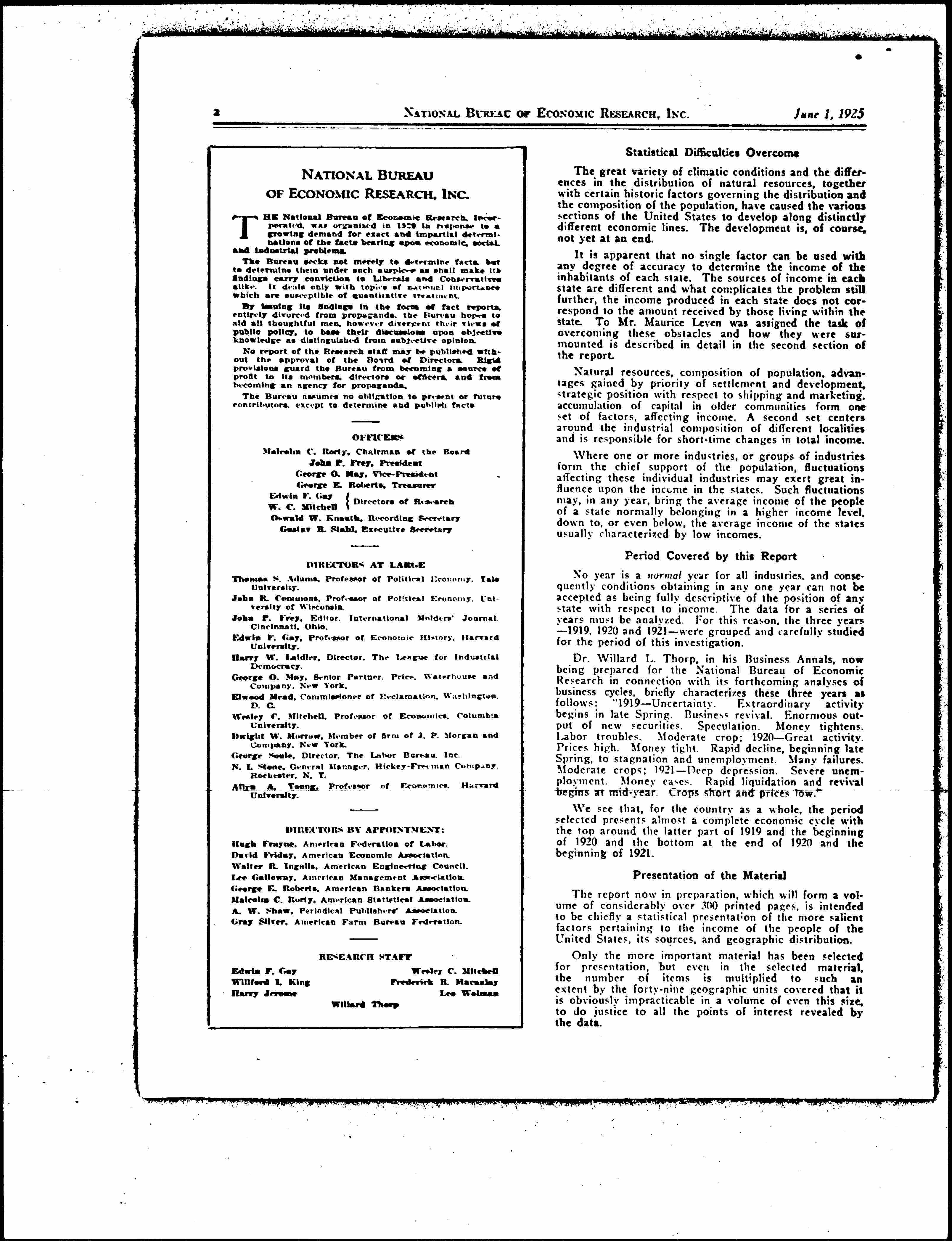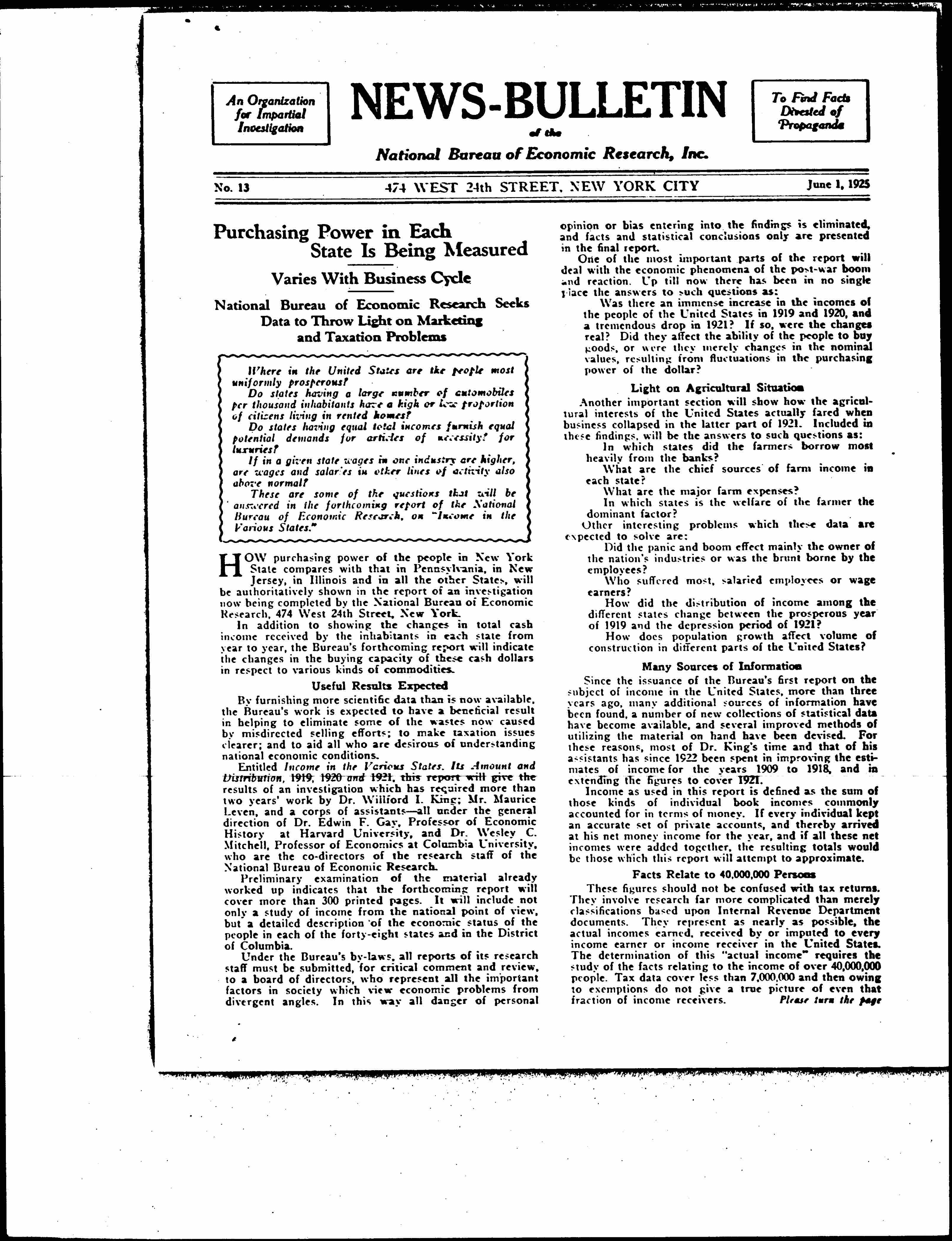 News Bulletin of the National Bureau of Economic Research, June 1, 1925