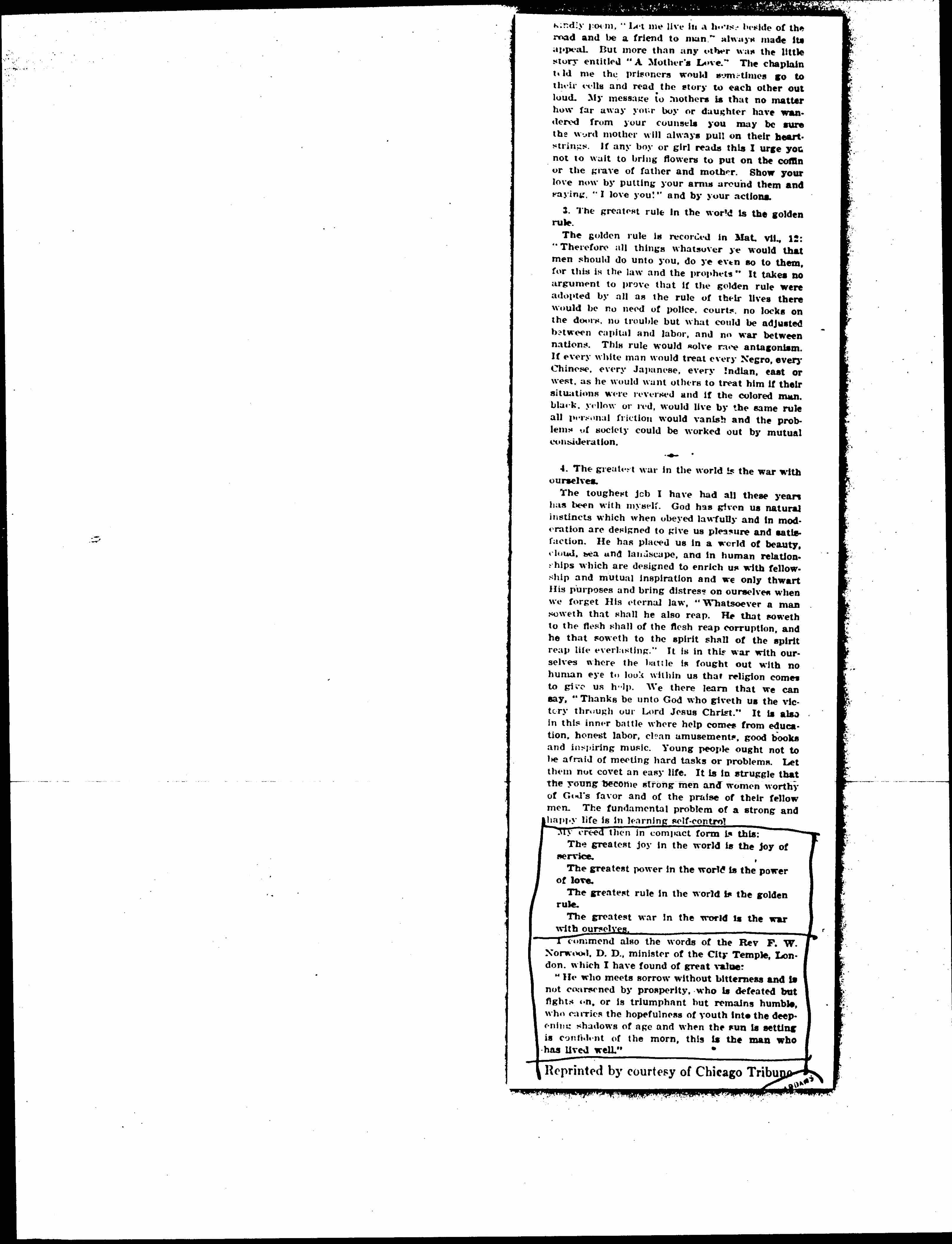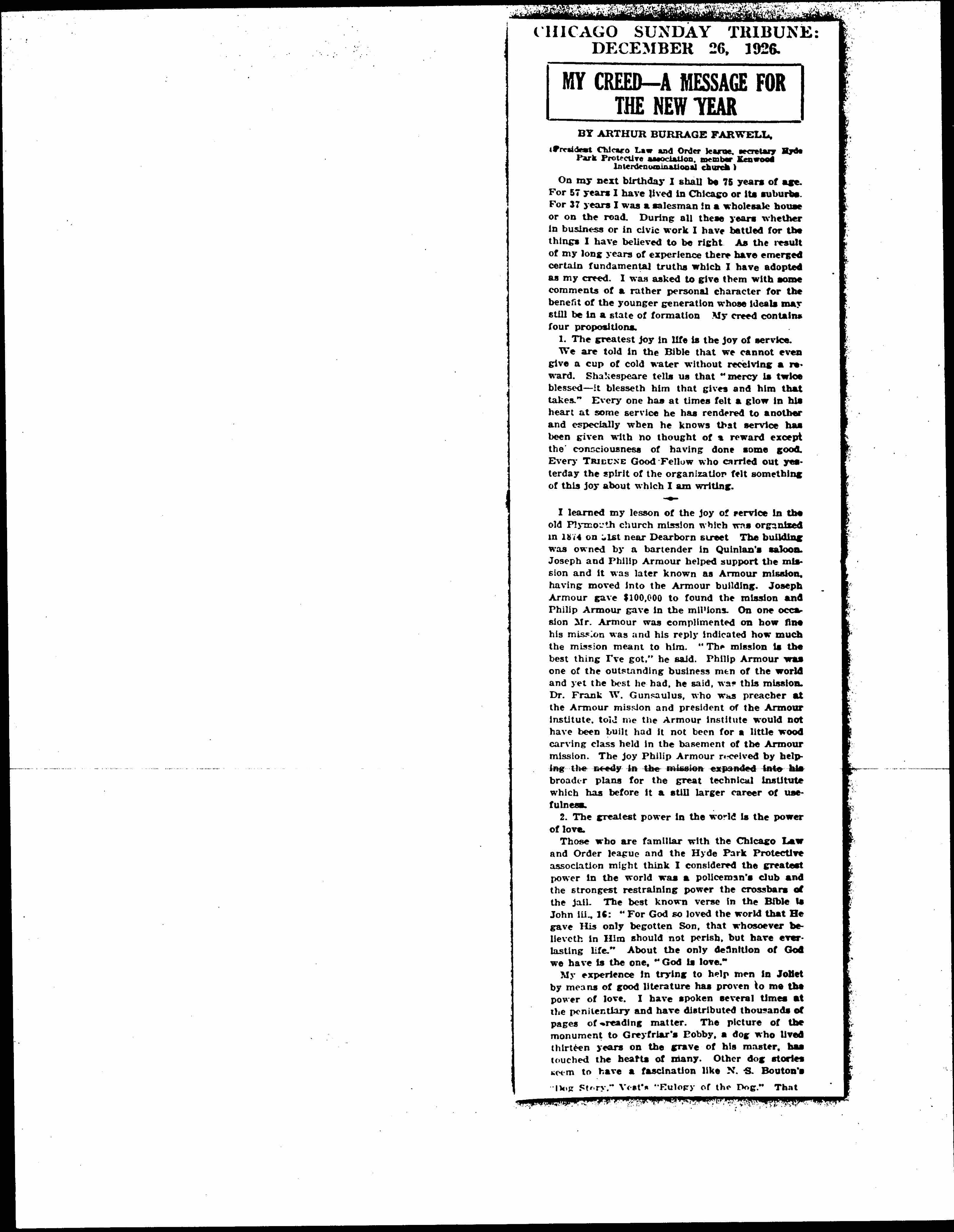 My Creed -- A Message for the New Year, December 26, 1926
