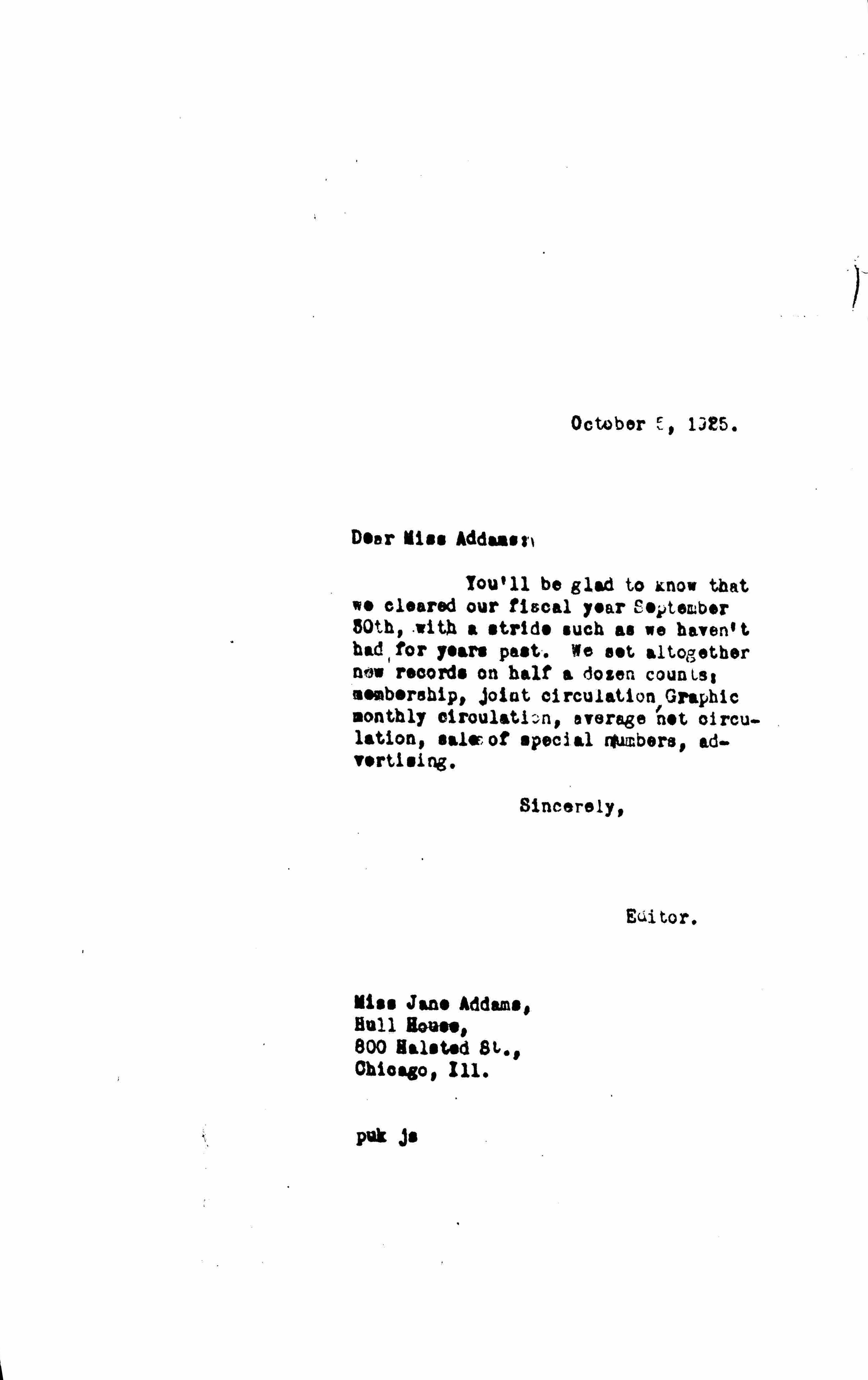 Dear Miss Addams: