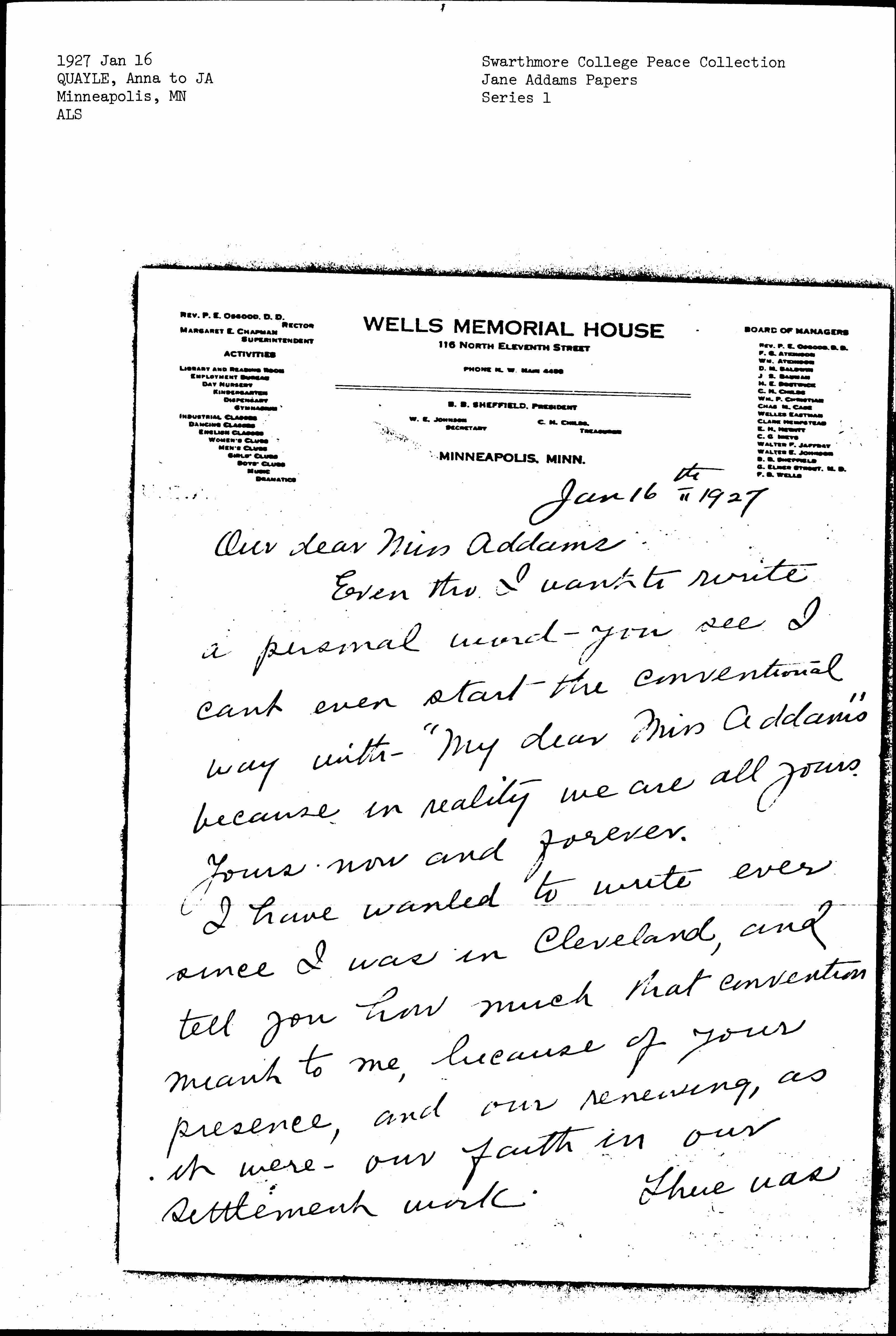 Even [though] I want to write a personal word -- you see I can't even start the conventional way with -- "My dear Miss Addams" because in reality we are all yours. Yours now and forever.