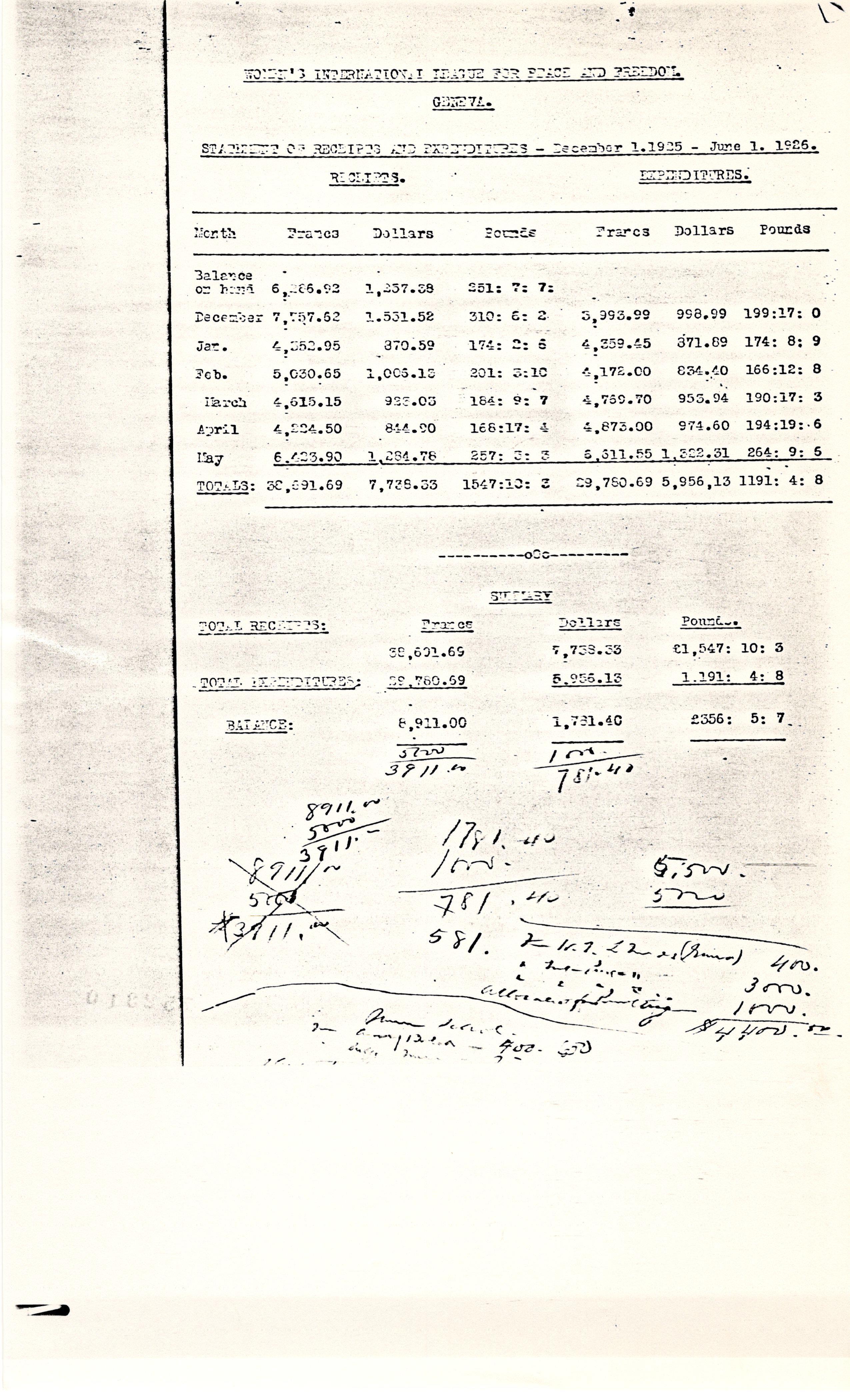 STATEMENT OF RECEIPTS AND EXPENDITURES -- December 1. 1925 -- June 1. 1926.