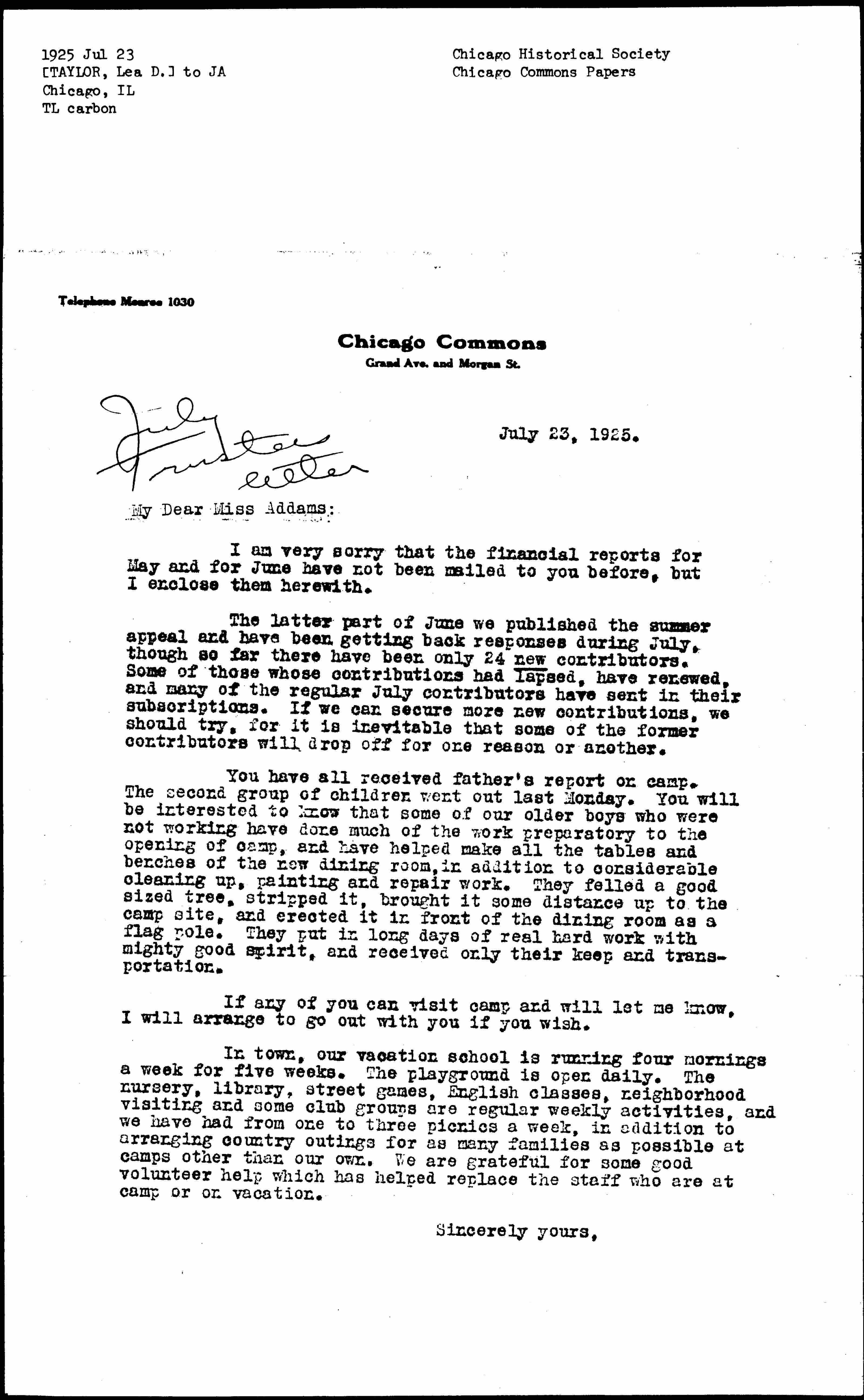 My Dear Miss Addams: