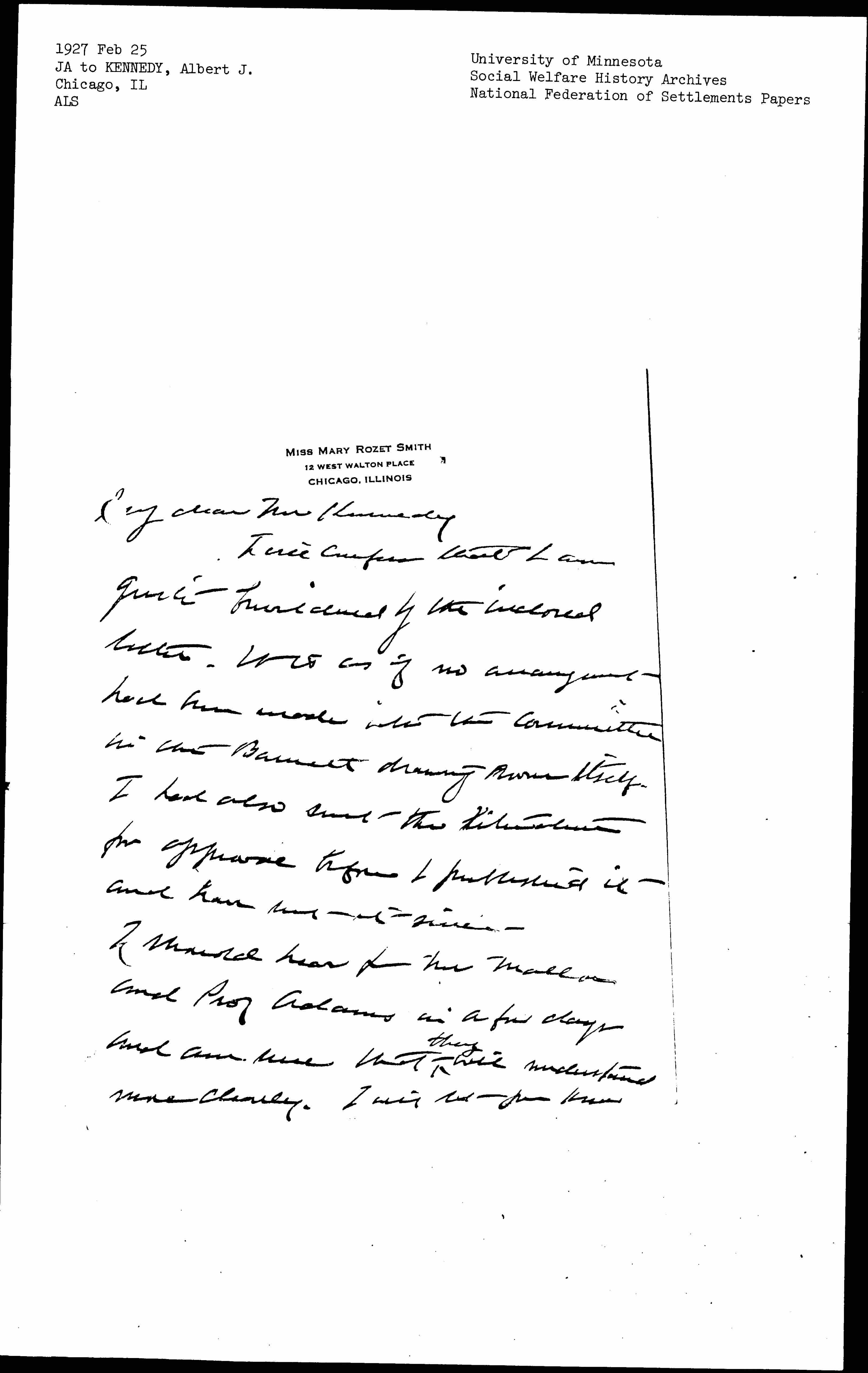 I should hear from Mr Mallon and Prof Adams in a few days and am sure that ↑they↓ will understand more clearly. I will let you know [page 2] as soon as I have.