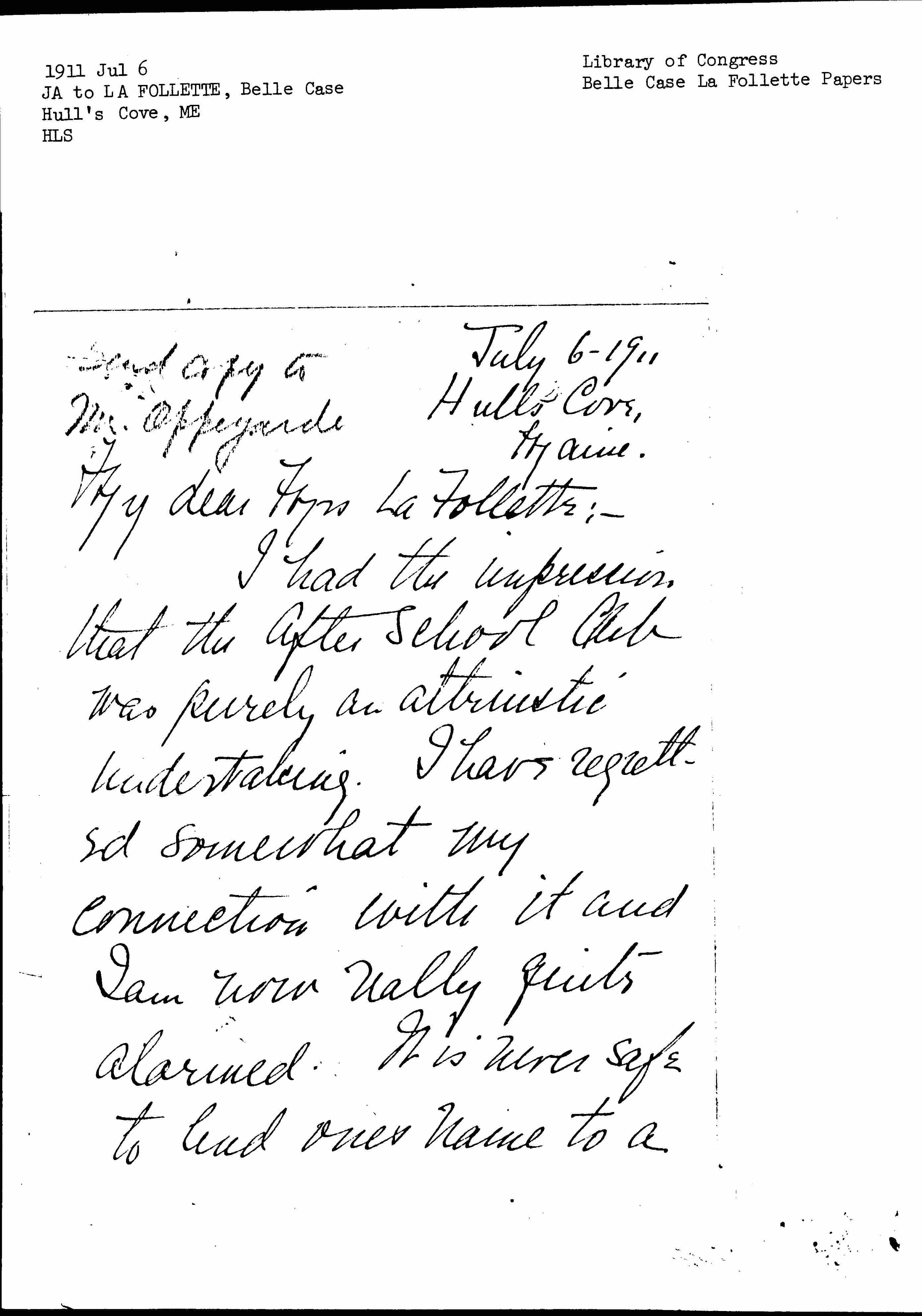 I had the impression that the After School Club was purely an altruistic undertaking. I have regretted somewhat my connection with it and I am now really quite alarmed. It is never safe to lend one's name to a [page 2] movement merely because it sounds generally kindly and philanthropic.