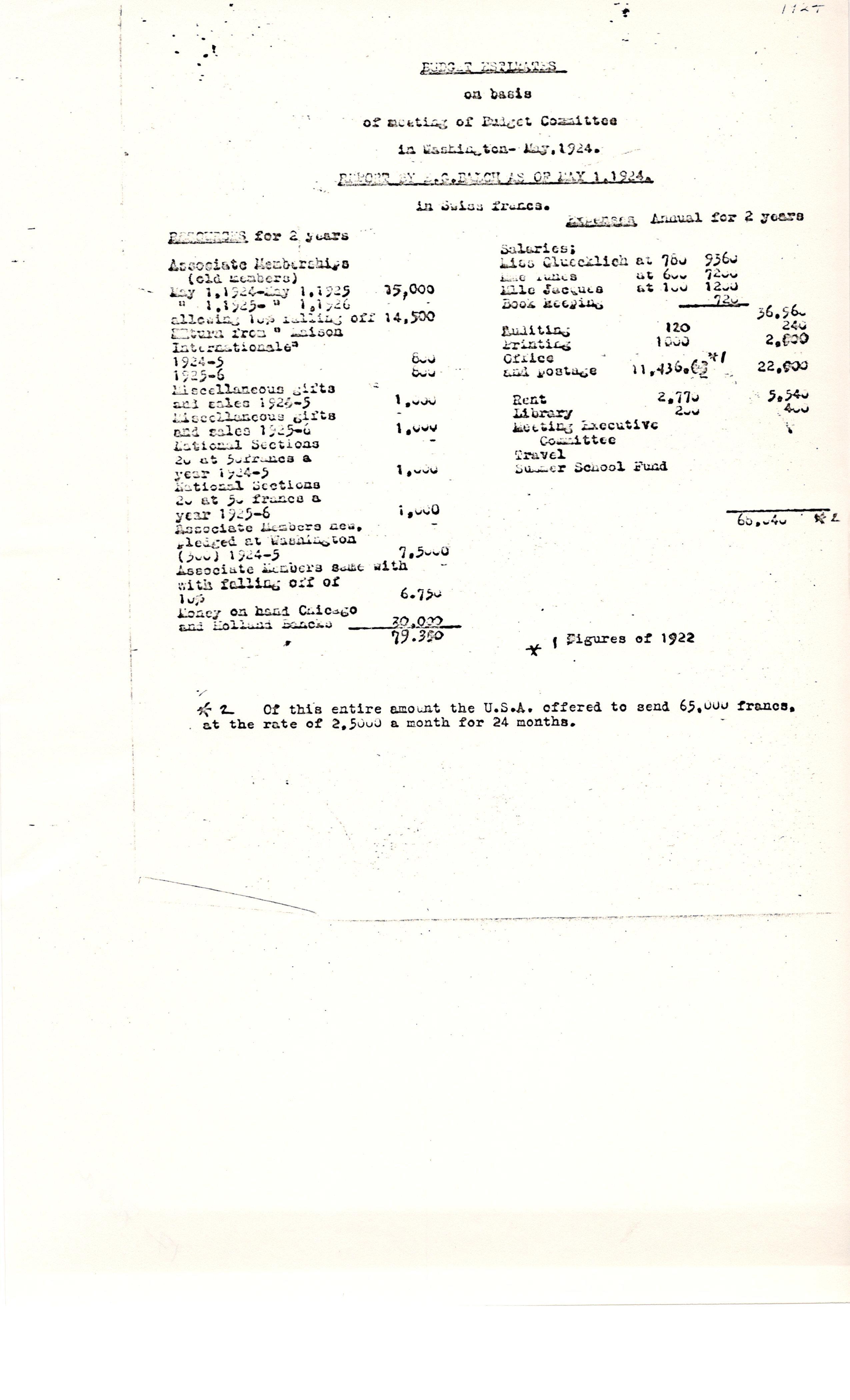 *2 Of this entire amount the U.S.A. offered to send 65,000 francs, at the rate of [2,500] francs for 24 months.
