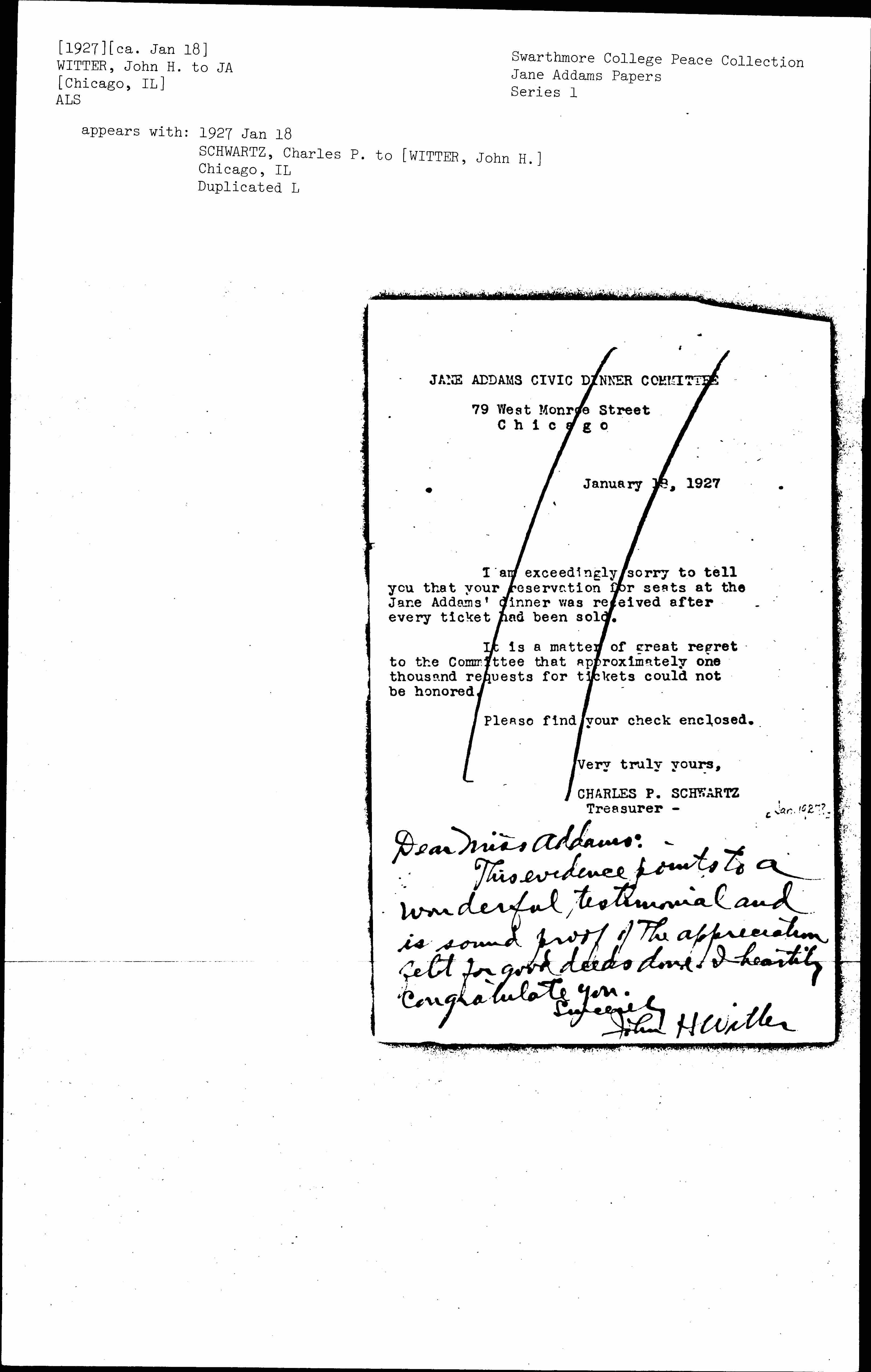 Dear Miss Addams: