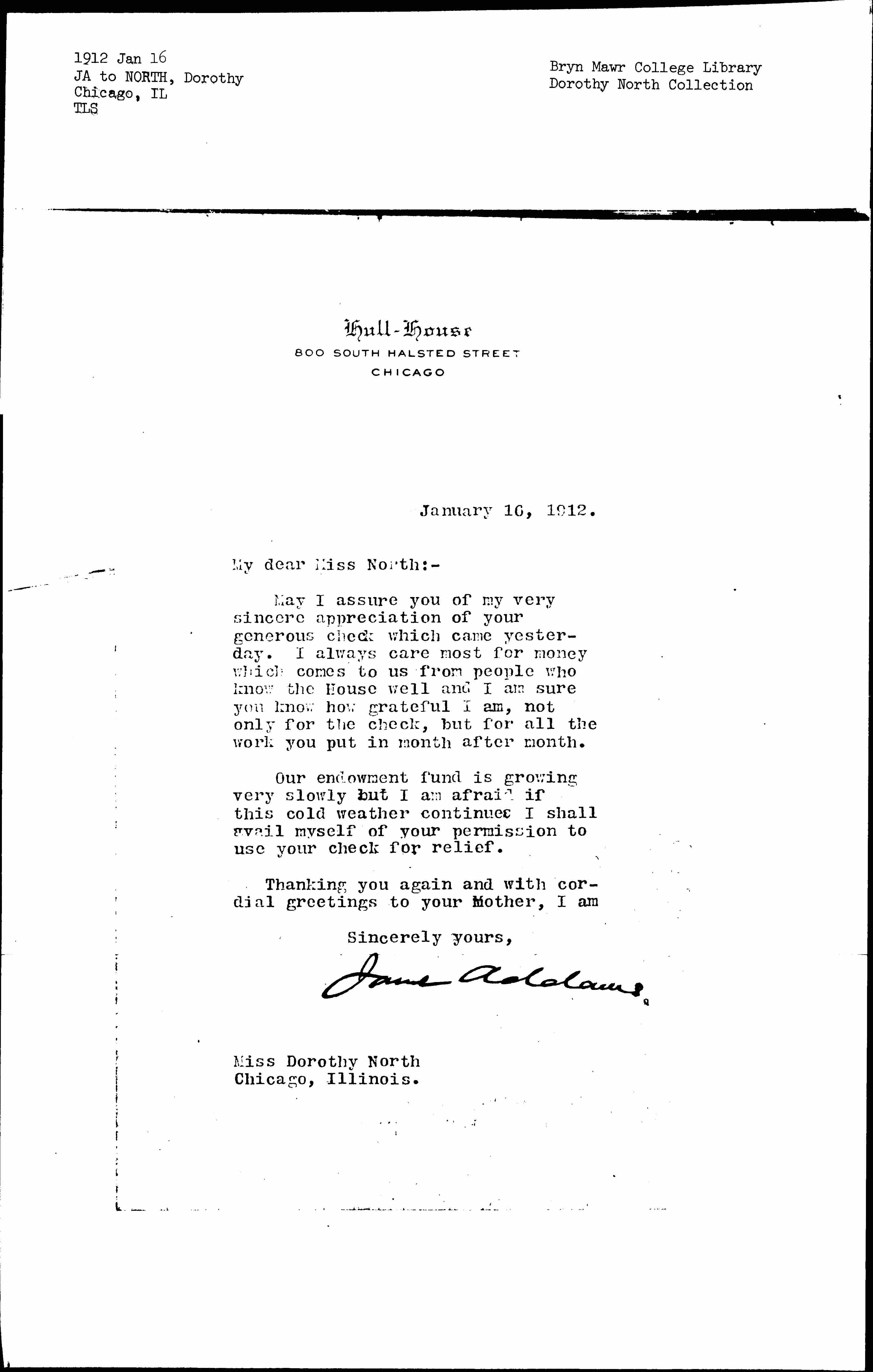 Jane Addams. [signed]
