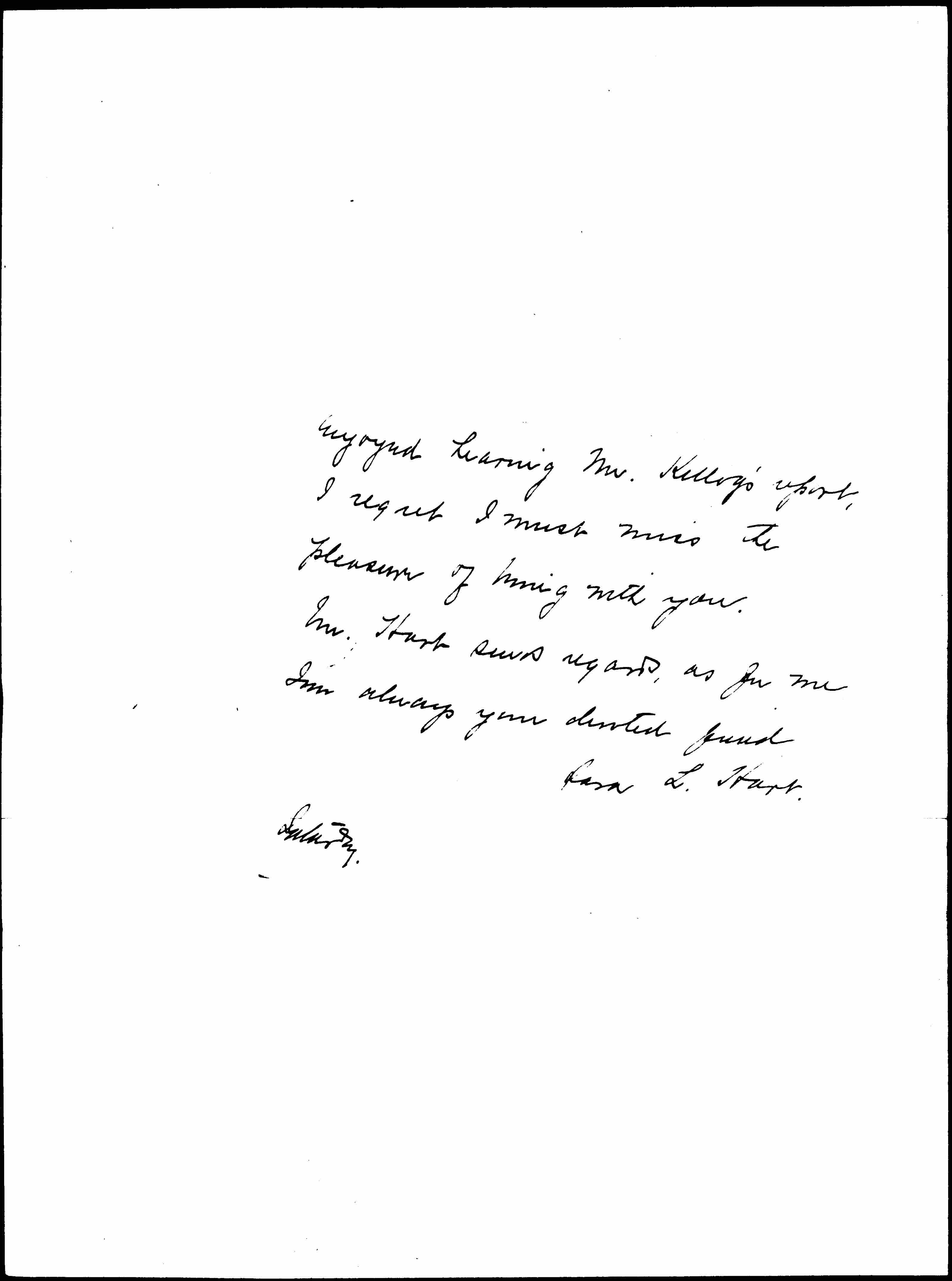 Mr. Hart sends regards, as for me I'm always your devoted friend
