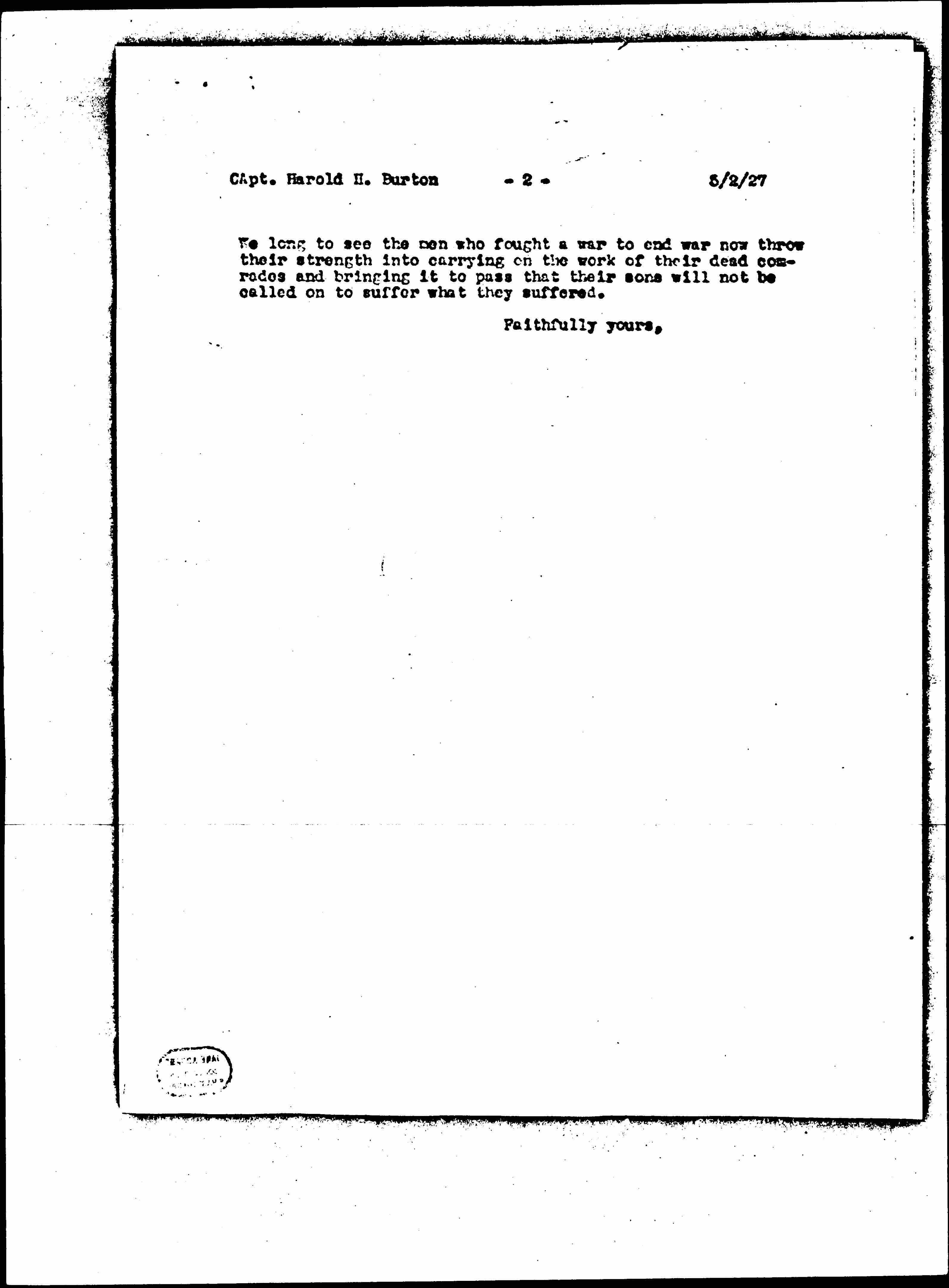 We long to see the men who fought a war to end war now throw their strength into carrying on the work of their dead comrades and bringing it to pass that their sons will not be called on to suffer what they suffered.
