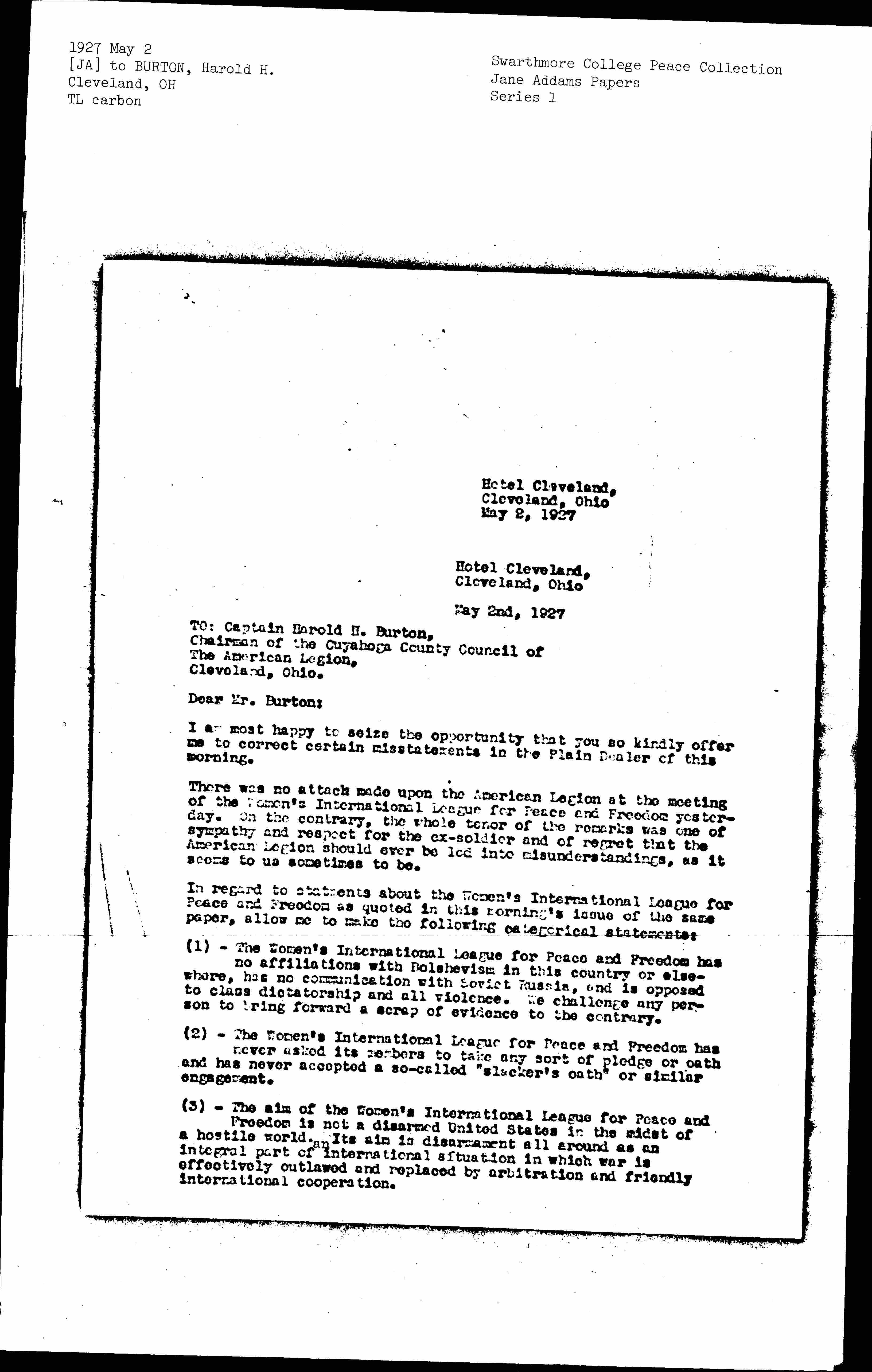 I am most happy to seize the opportunity that you so kindly offer me to correct certain misstatements in the Plain Dealer of this morning.