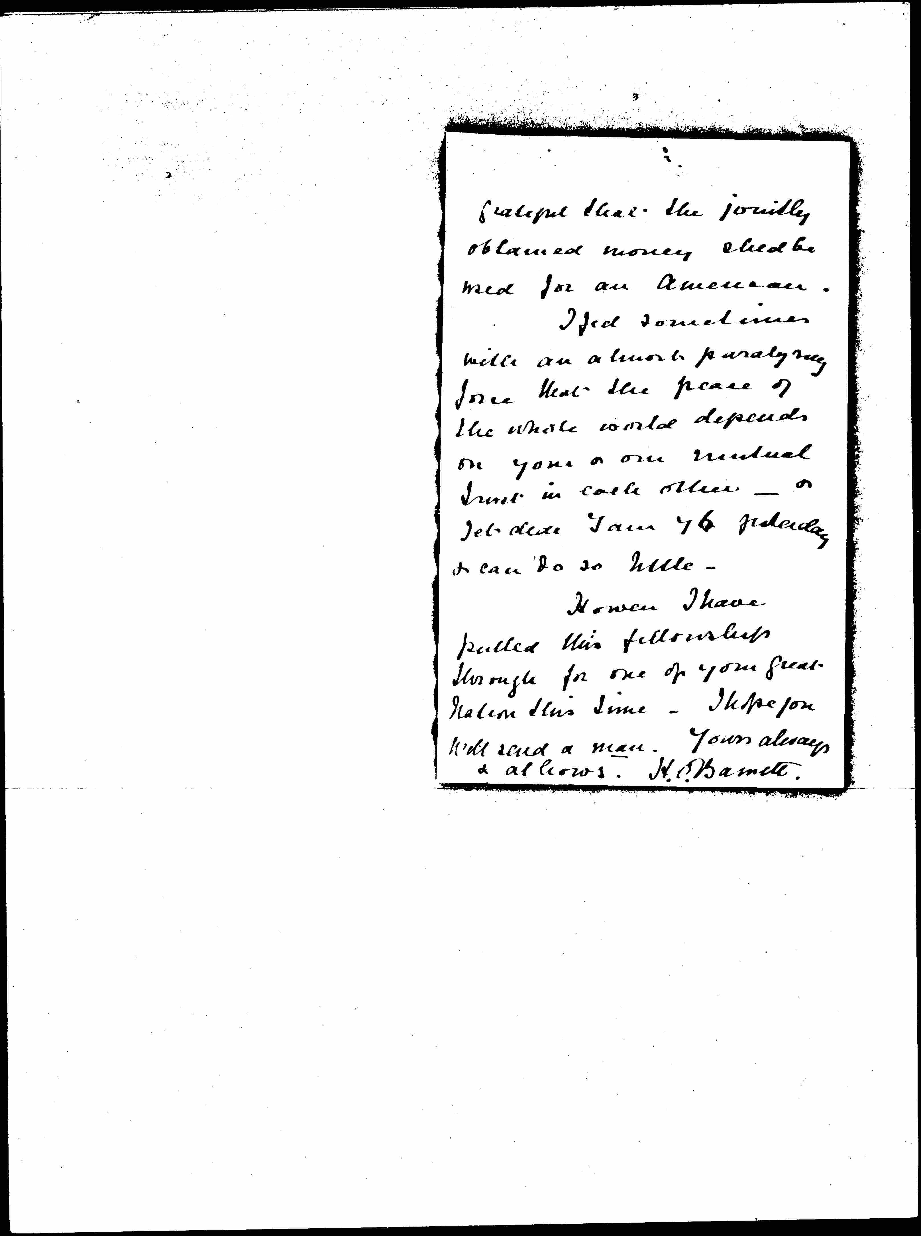 I can only add to do that I am deeply [page 2] grateful that the jointly obtained money shld be used for an American.
