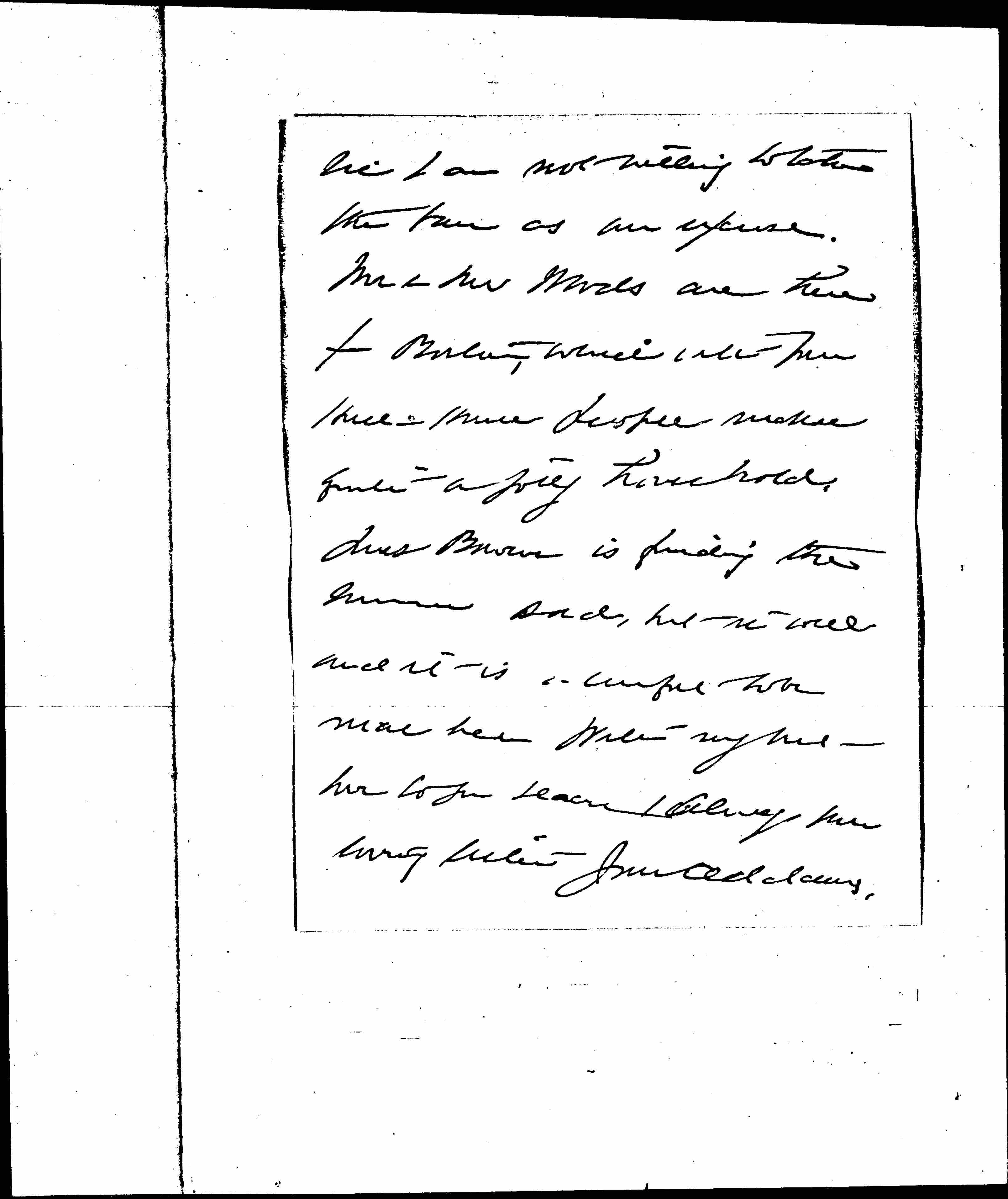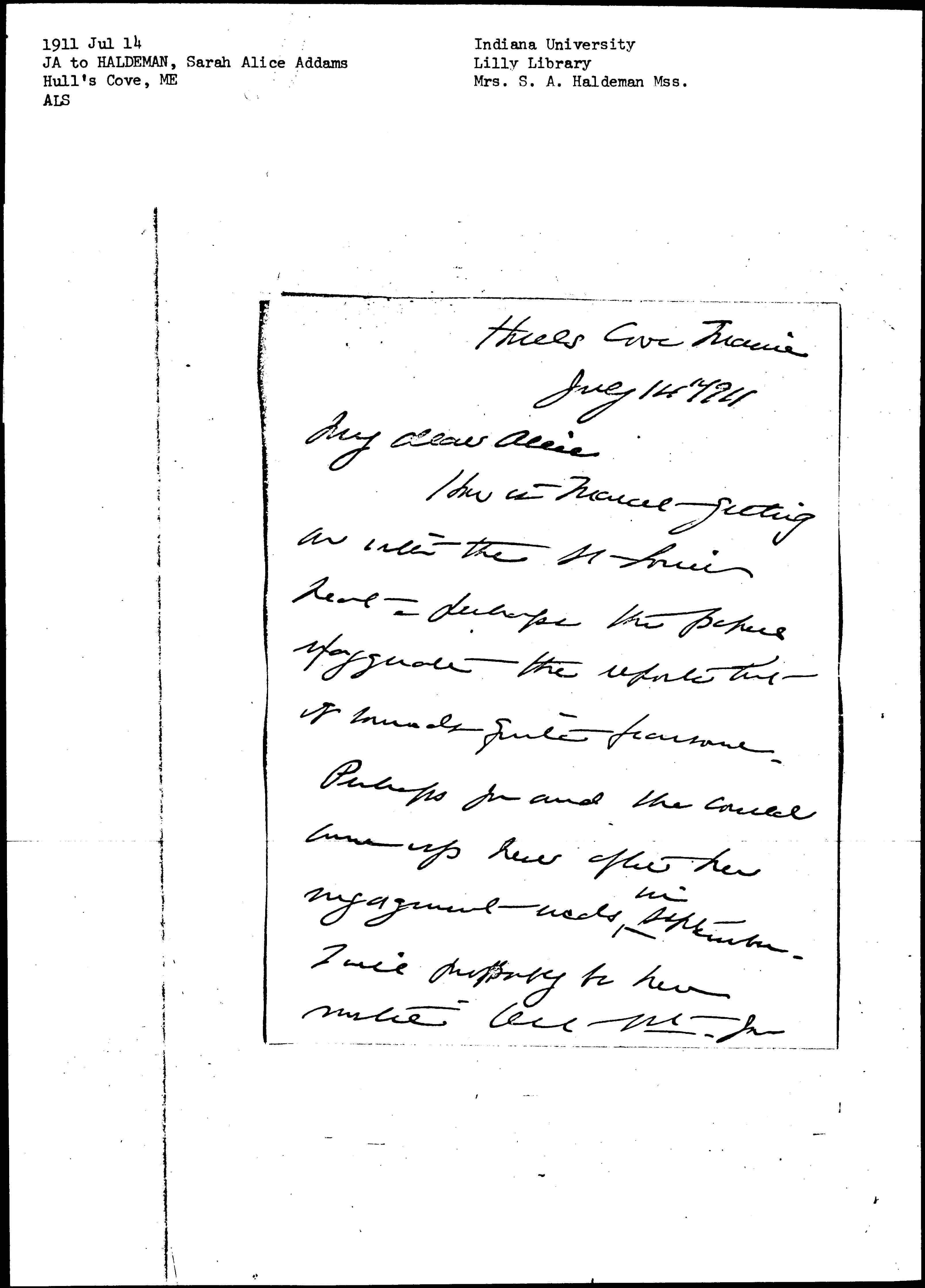 Perhaps you and she could come up here after her engagement ends <in> September. I will probably be here until Oct 1st. You [page 2] see I am not willing to take the ban as an excuse. Mr & Mrs Woods are here from Boston, which with [five?] Hull-House people makes quite a jolly household.