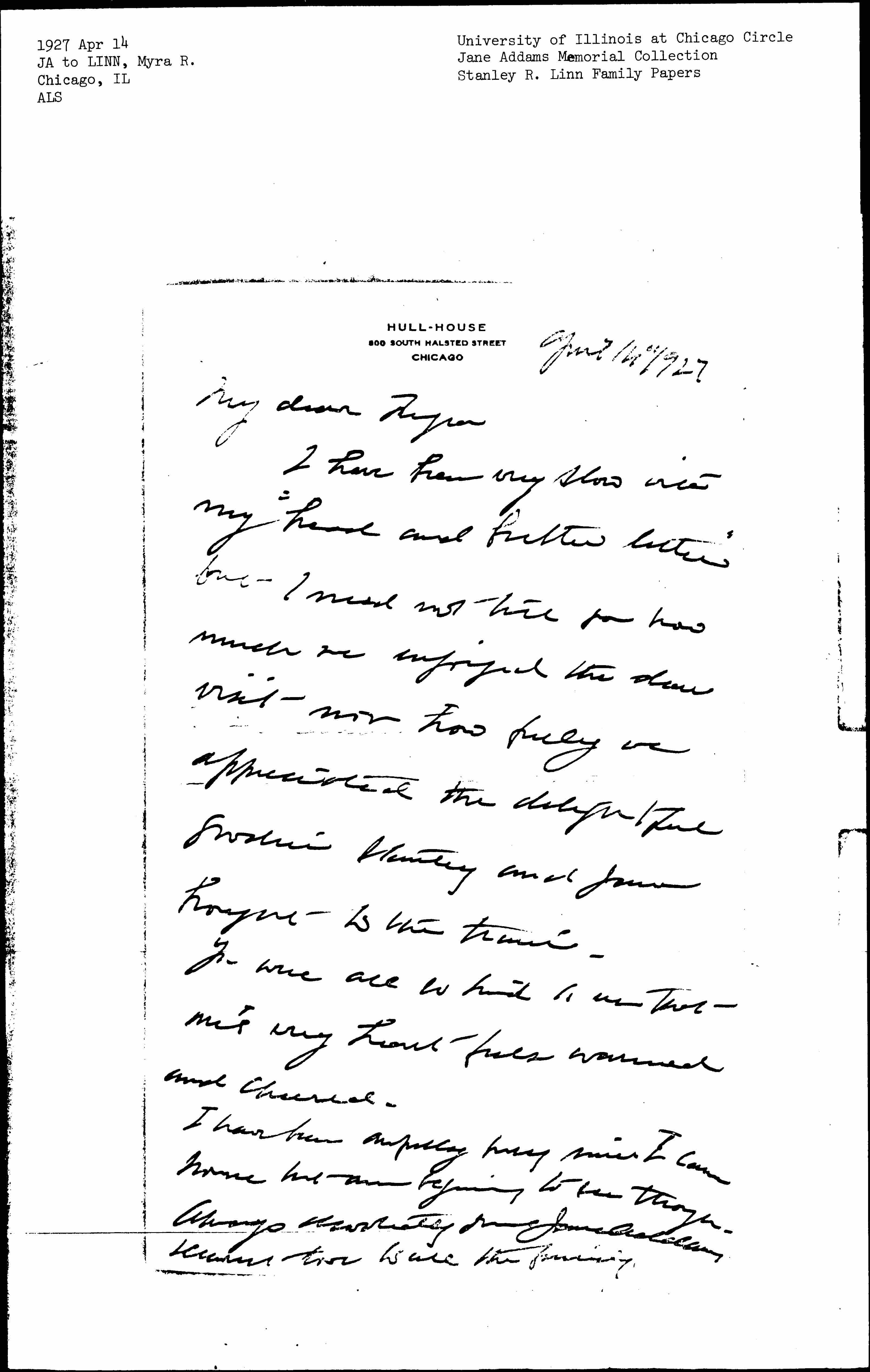 Always devotedly yours Jane Addams