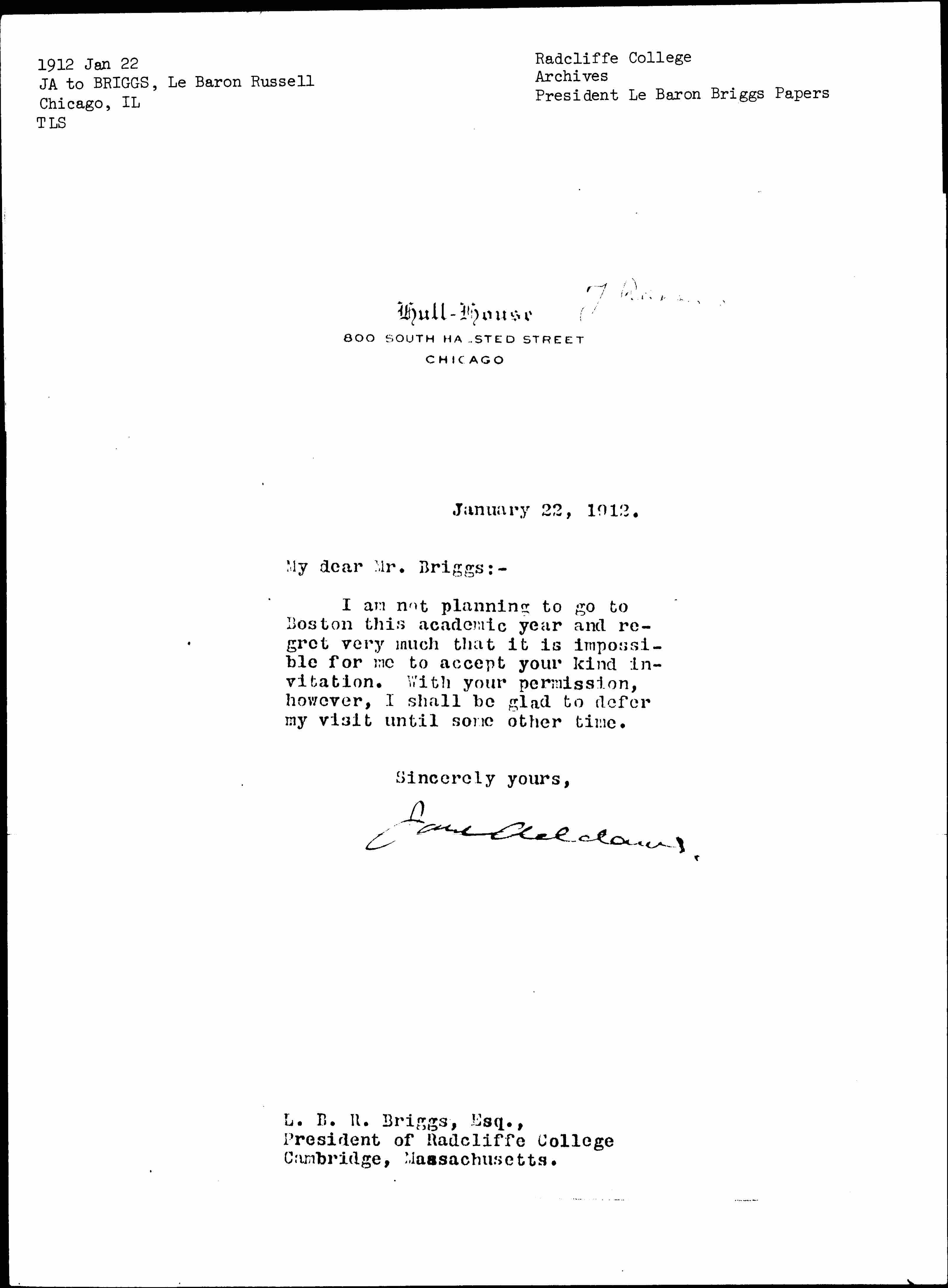 I am not planning to go to Boston this academic year and regret very much that it is impossible for me to accept your kind invitation. With your permission, however, I shall be glad to defer my visit until some other time.