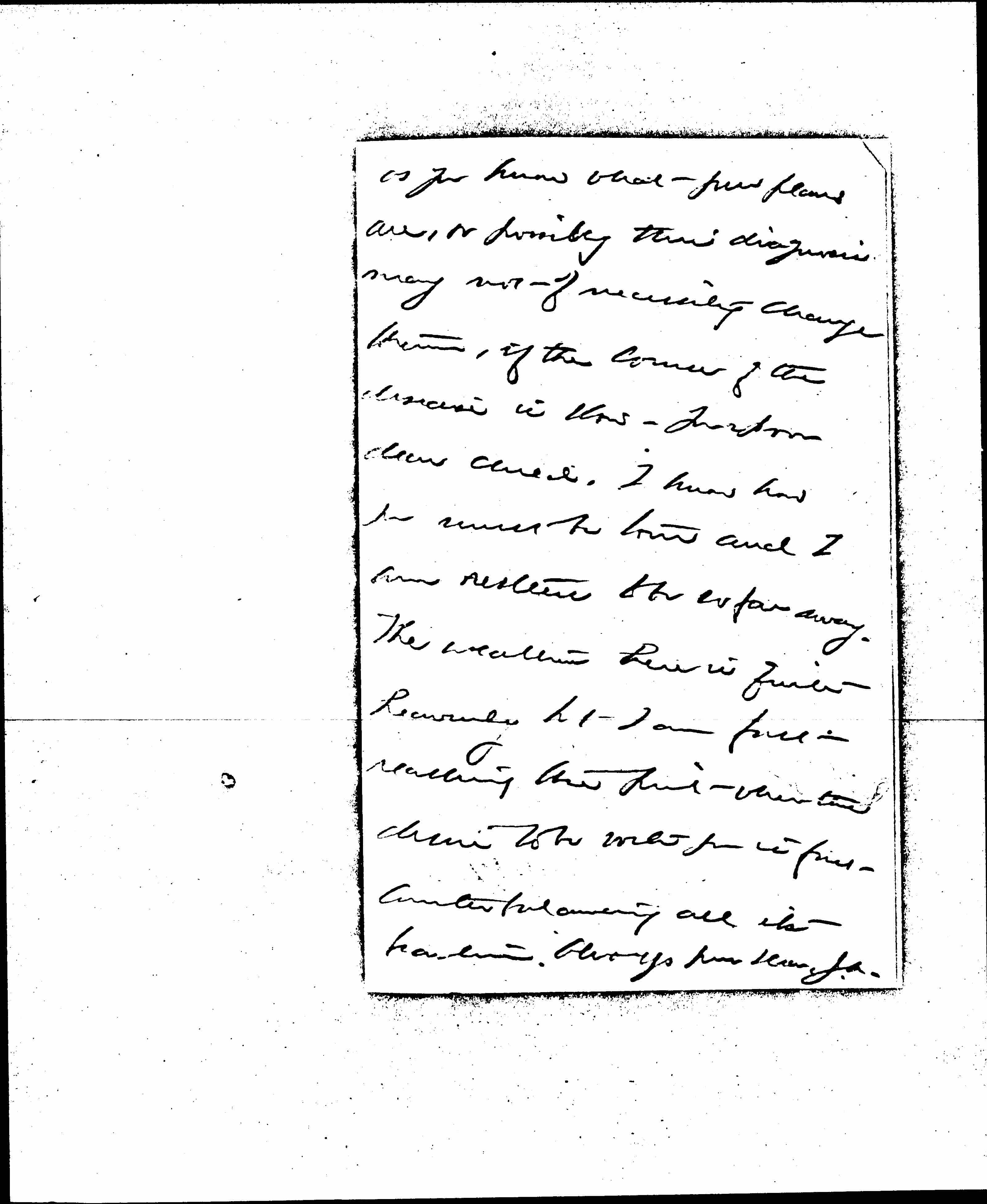 Will you let me know as soon [page 2] as you know what your plans are, or possibly this diagnosis may not of necessity change them, if the course of the disease is slow. Your poor dear child. I know how you must be torn and I am restless to be so far away.