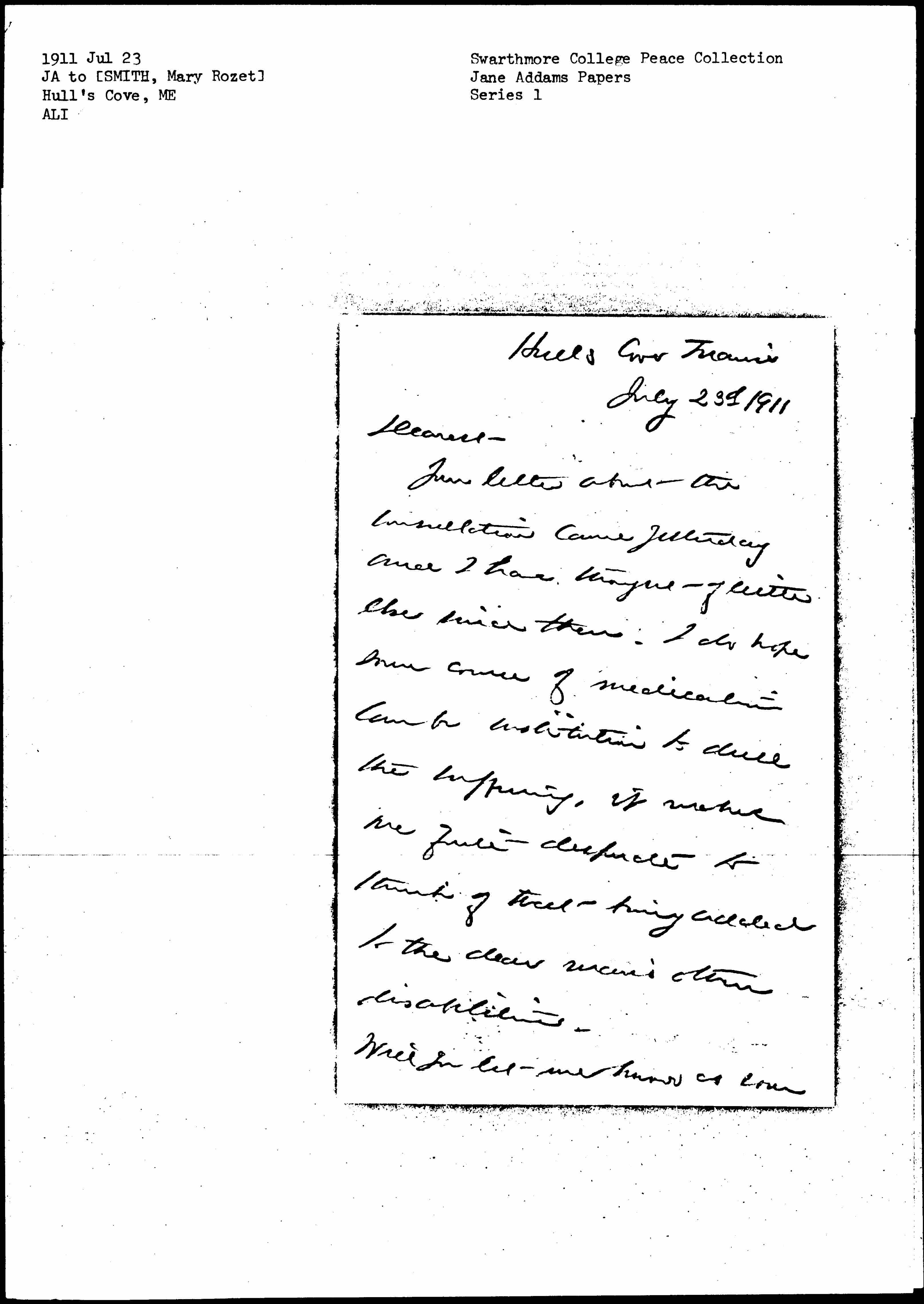 Always yours Dear, J. A.