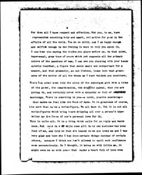 There are many women in the world today who are doing great things; and for them all I have a respect and a sort of impersonal affection. They are fighting my battles of course, and those of my beautiful daughter. Yes, and the big son's too for we stand and fall together. And I myself know enough and have had the courage of my faith in a square deal to a sufficient extent so that the son looks at other boys' sisters with clean eyes and understands why he must [illegible] do so in order to be a man. [page 2]