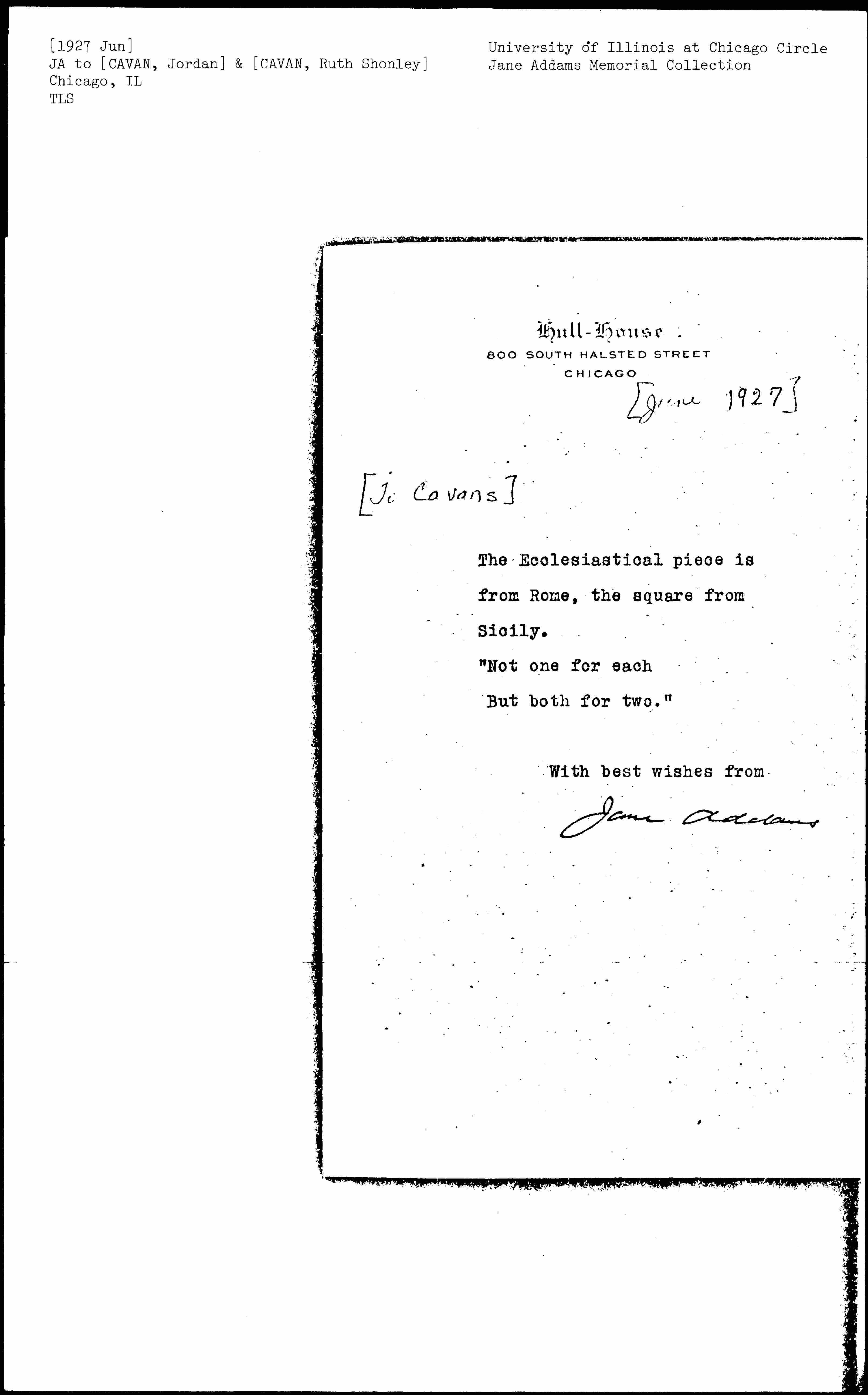 Jane Addams [signed]