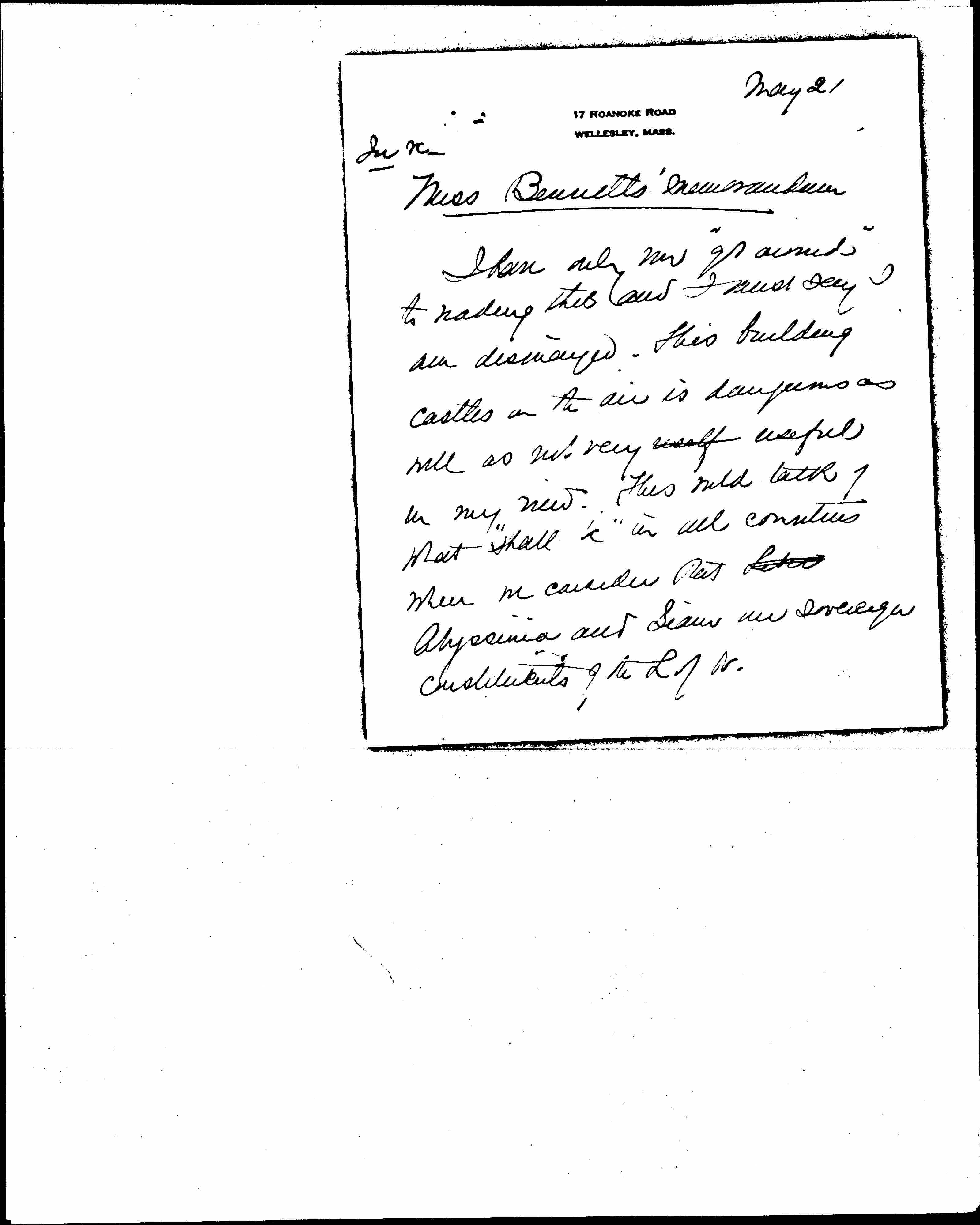 In re Miss Bennett's memorandum