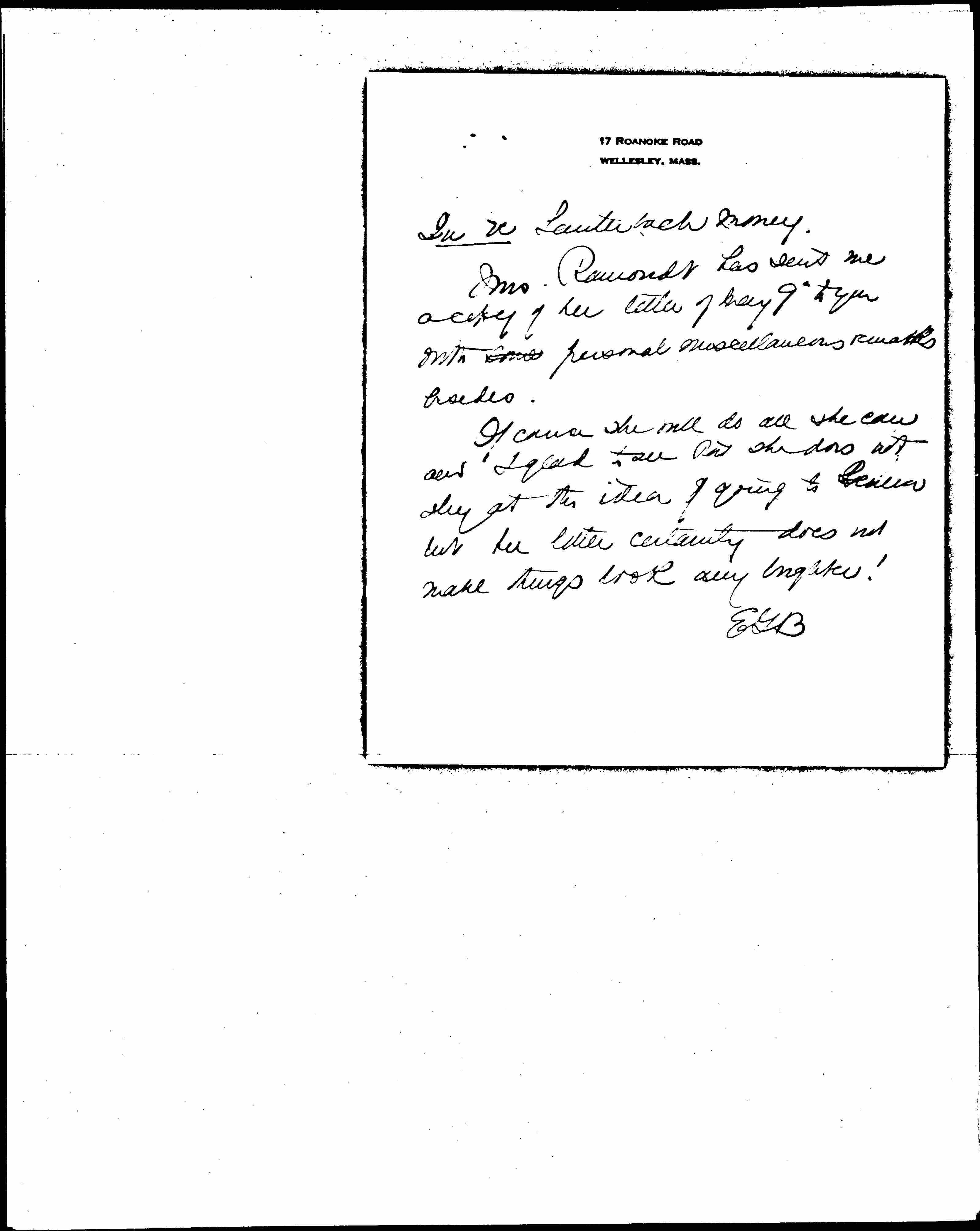 Mrs. Ramondt has sent me a copy of her letter of May 9th to you with some personal miscellaneous remarks besides.