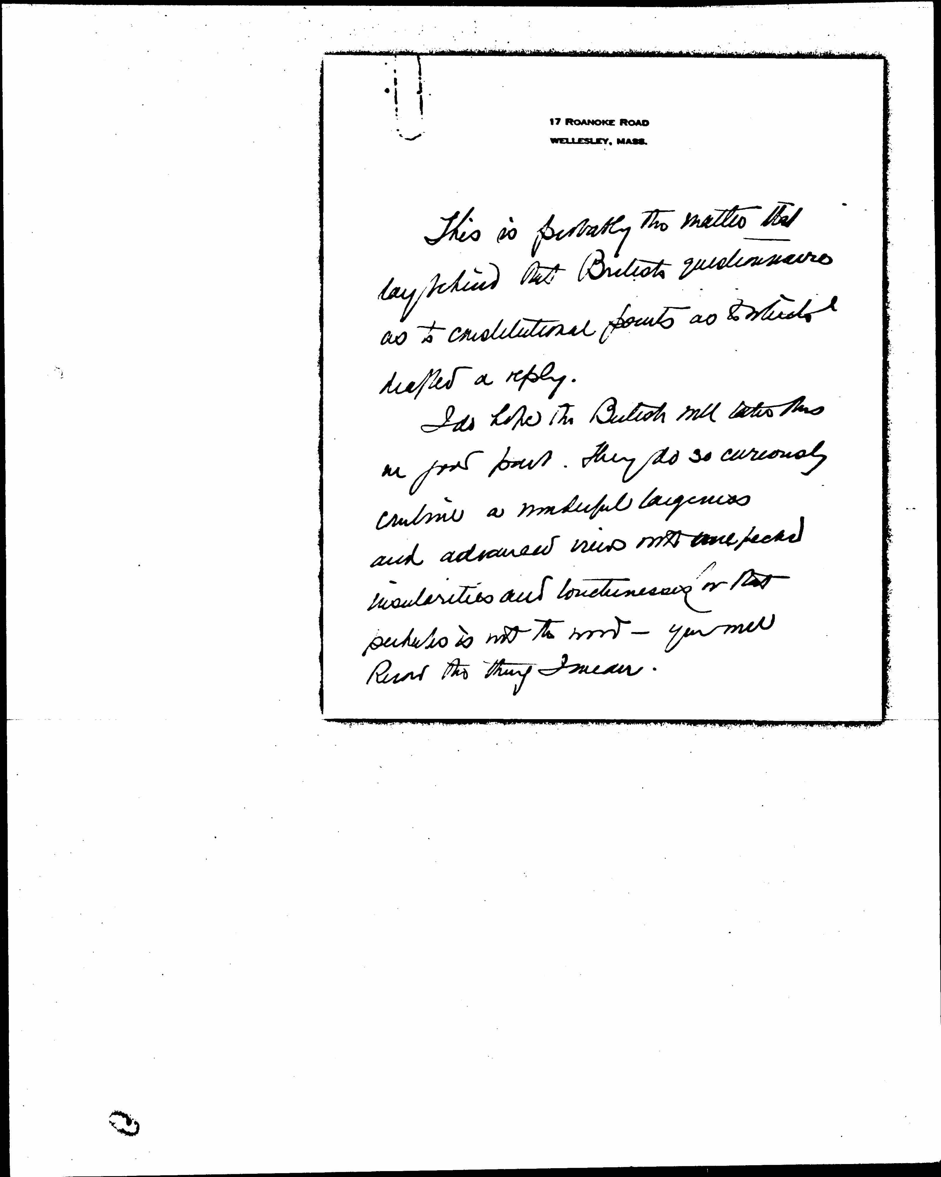 I do hope the British will take this in good part. They do so curiously continue a wonderful [illegible] and advanced view with some [packed?] insularities and touchiness (or that perhaps is not the word) -- you will know the thing I mean. [page 9]